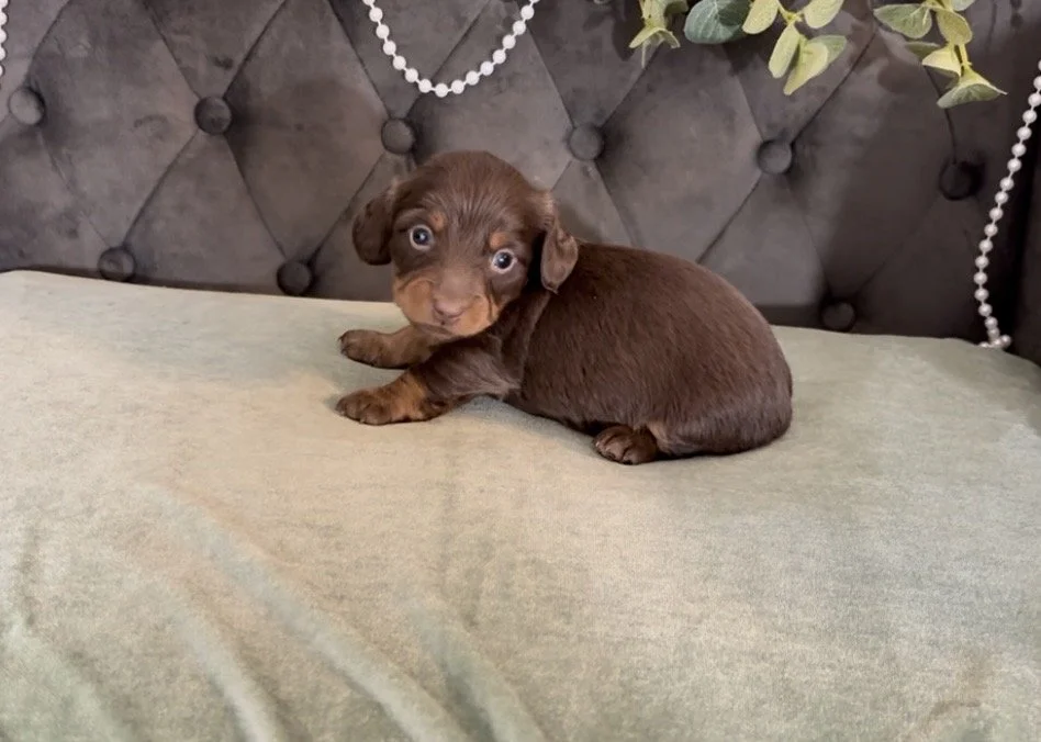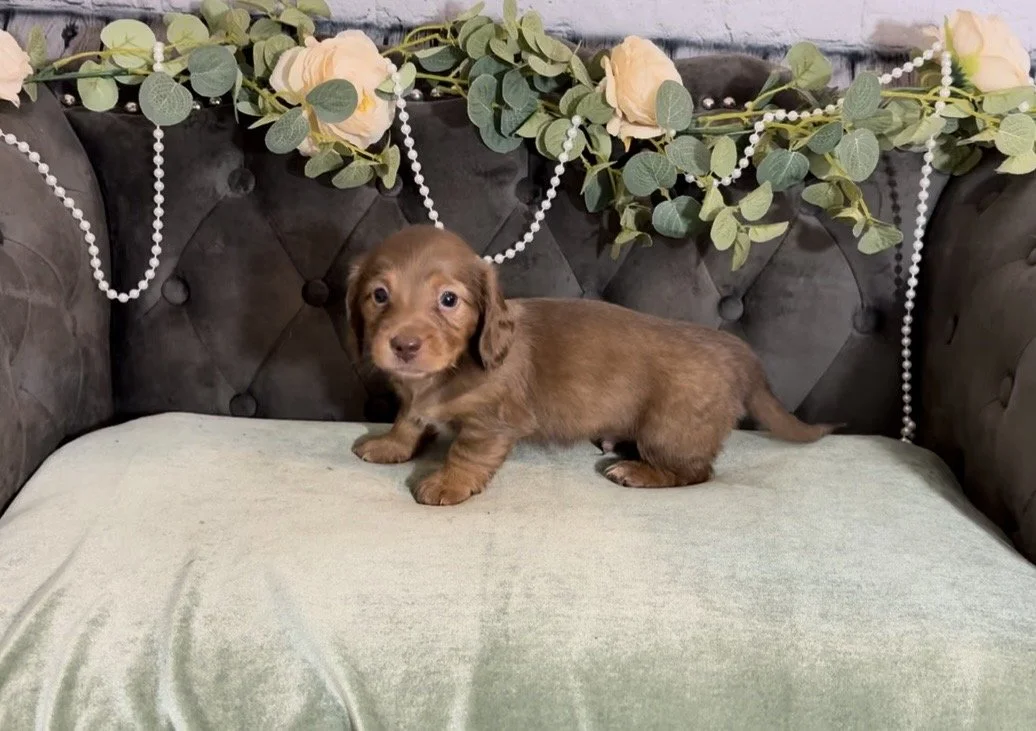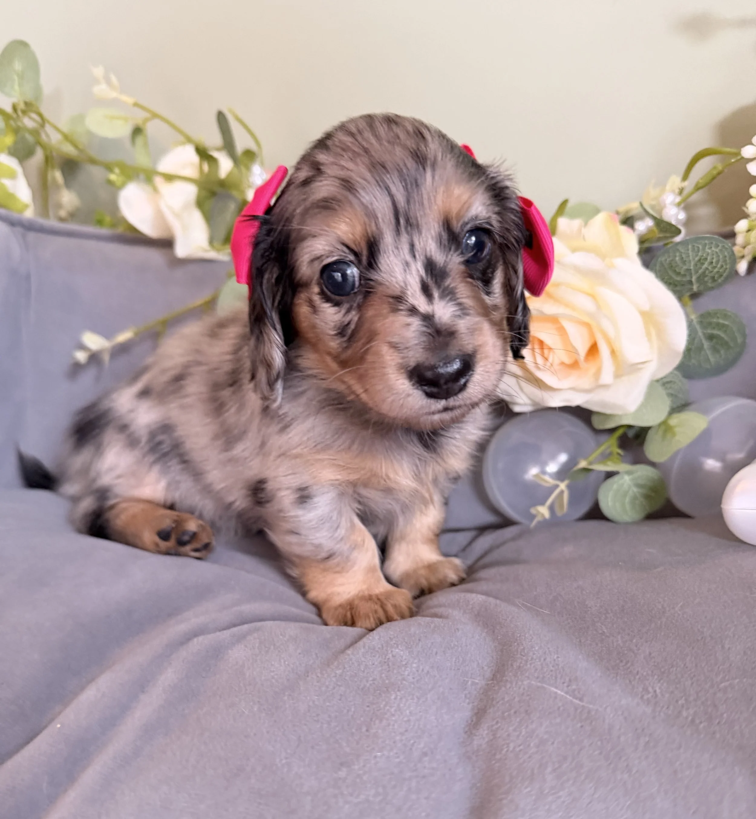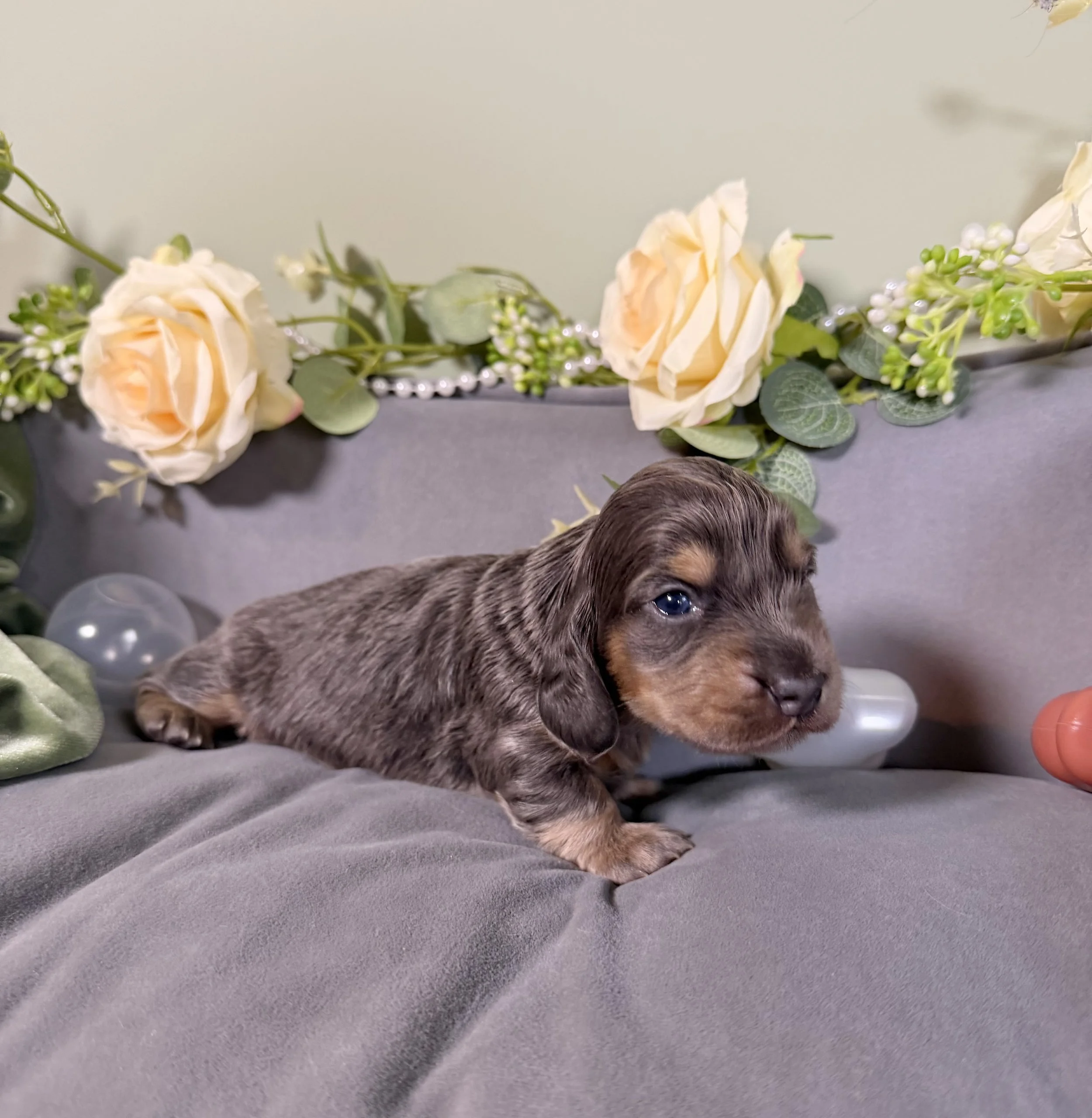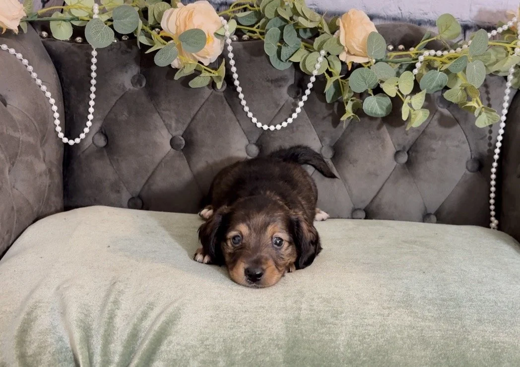 At Wildflower Dachshunds, we update this page regularly with our current available miniature dachshund puppies. Each puppy is vet-checked, up to date on shots, dewormed, and comes with a health guarantee. All of our breeding dogs are health tested and registered. For health and safety reasons, we do not allow exposure or visits until puppies are a minimum of 8 weeks old and vaccinated.