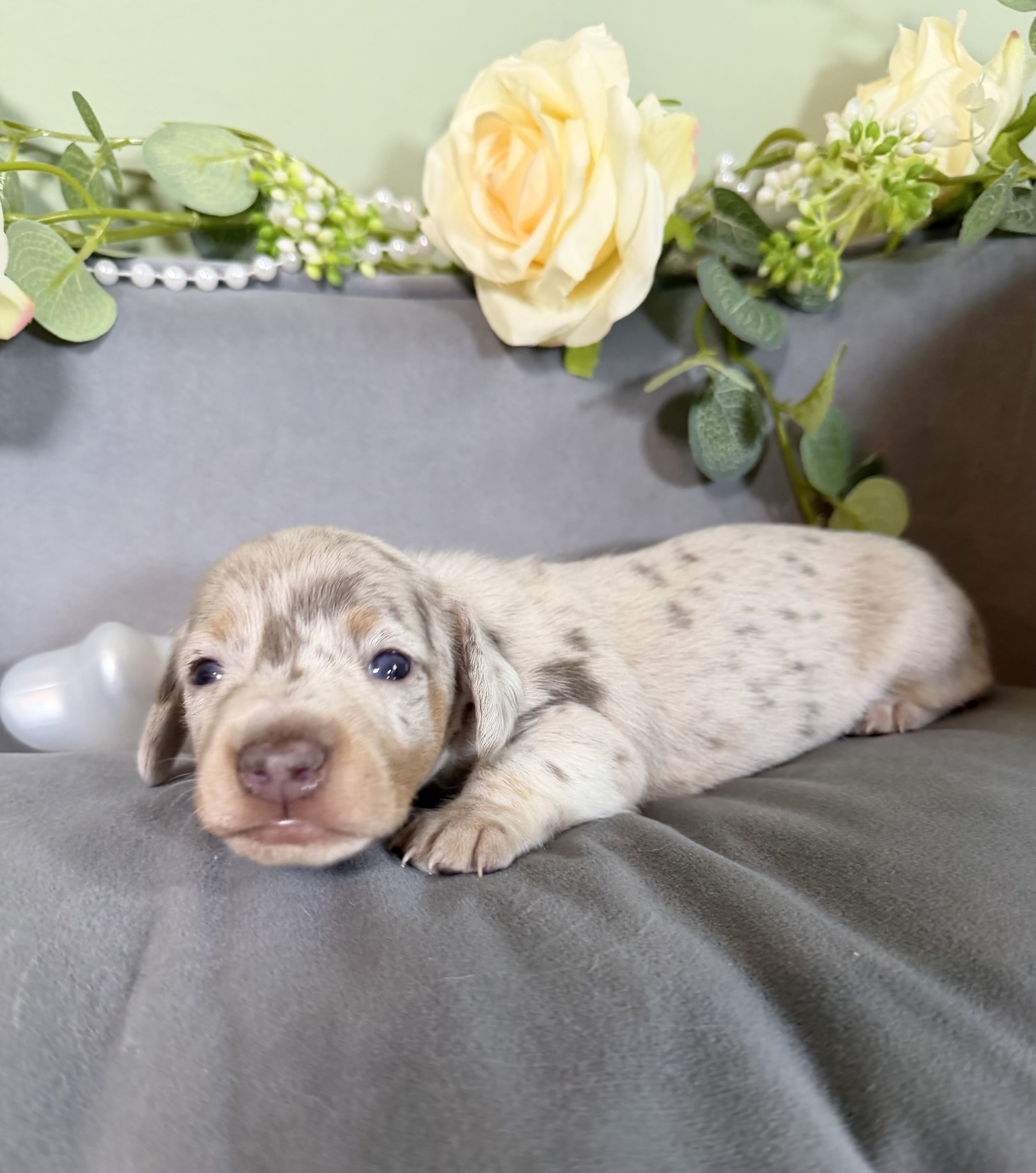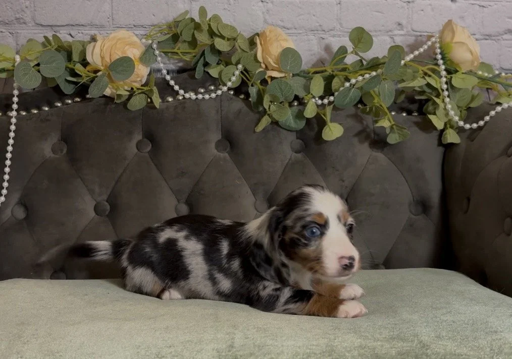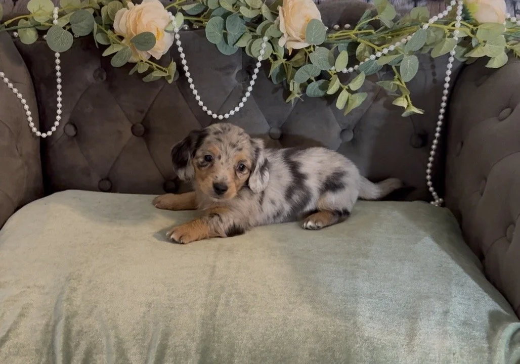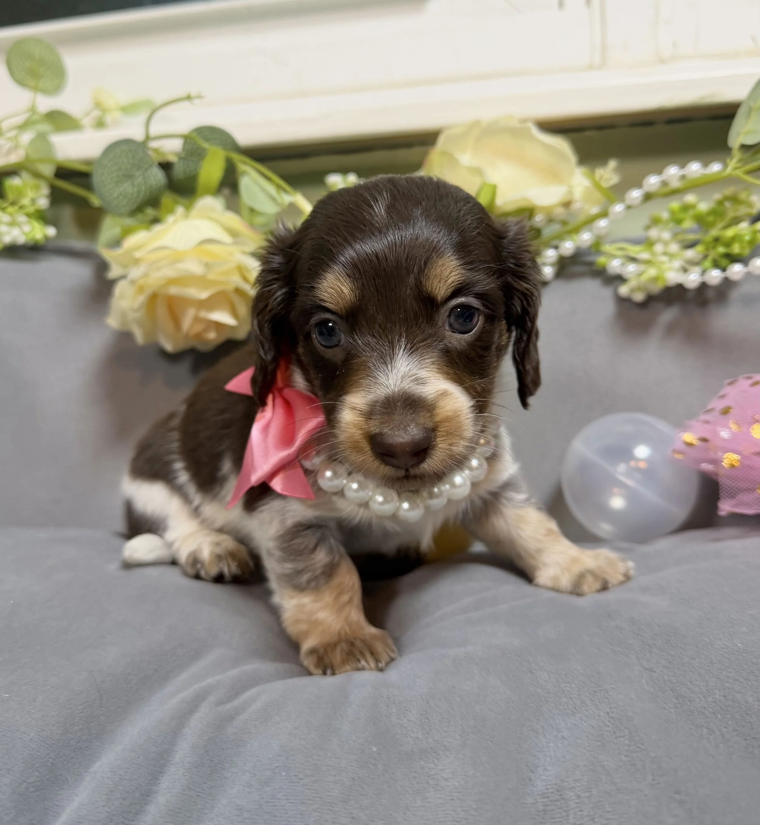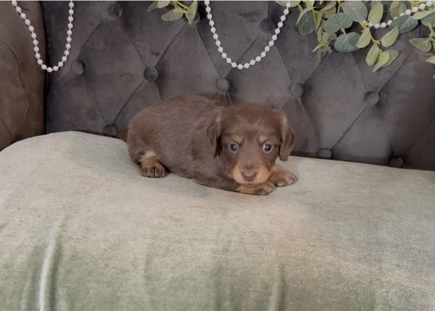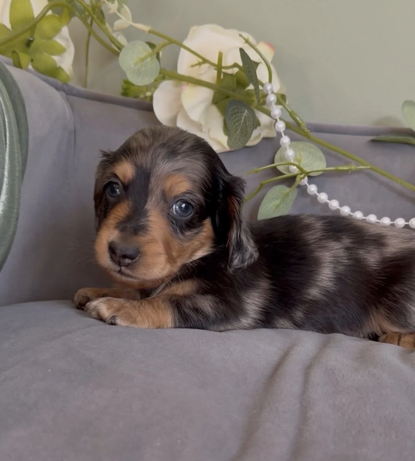 At Wildflower Dachshunds, we update this page regularly with our current available miniature dachshund puppies. Each puppy is vet-checked, up to date on shots, dewormed, and comes with a health guarantee. All of our breeding dogs are health tested and registered. For health and safety reasons, we do not allow exposure or visits until puppies are a minimum of 8 weeks old and vaccinated.