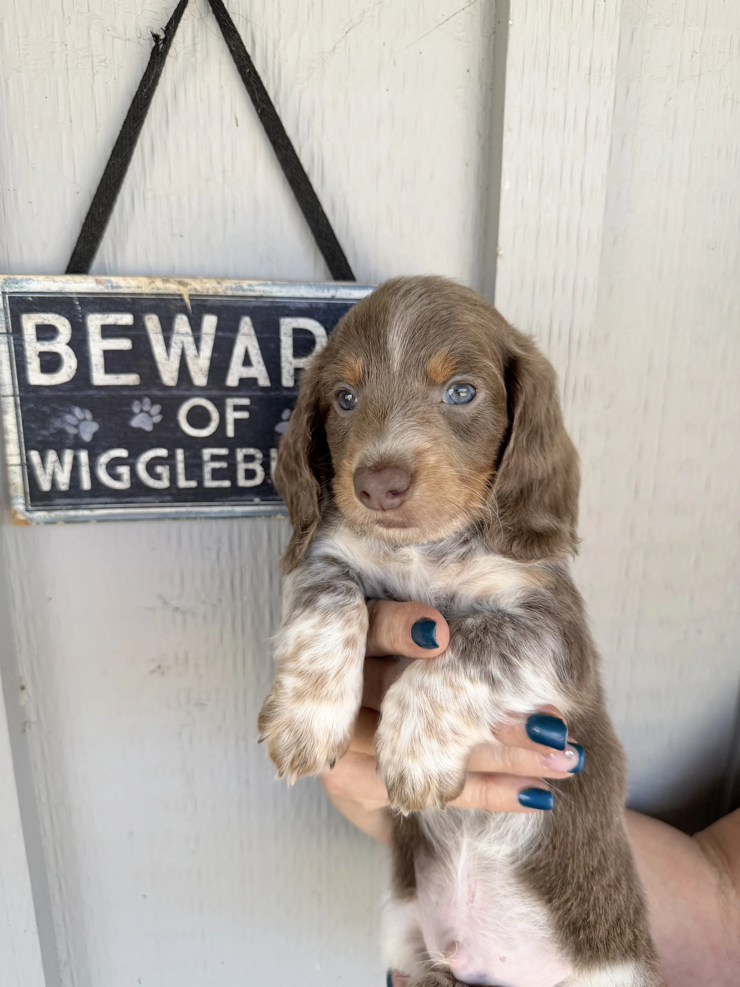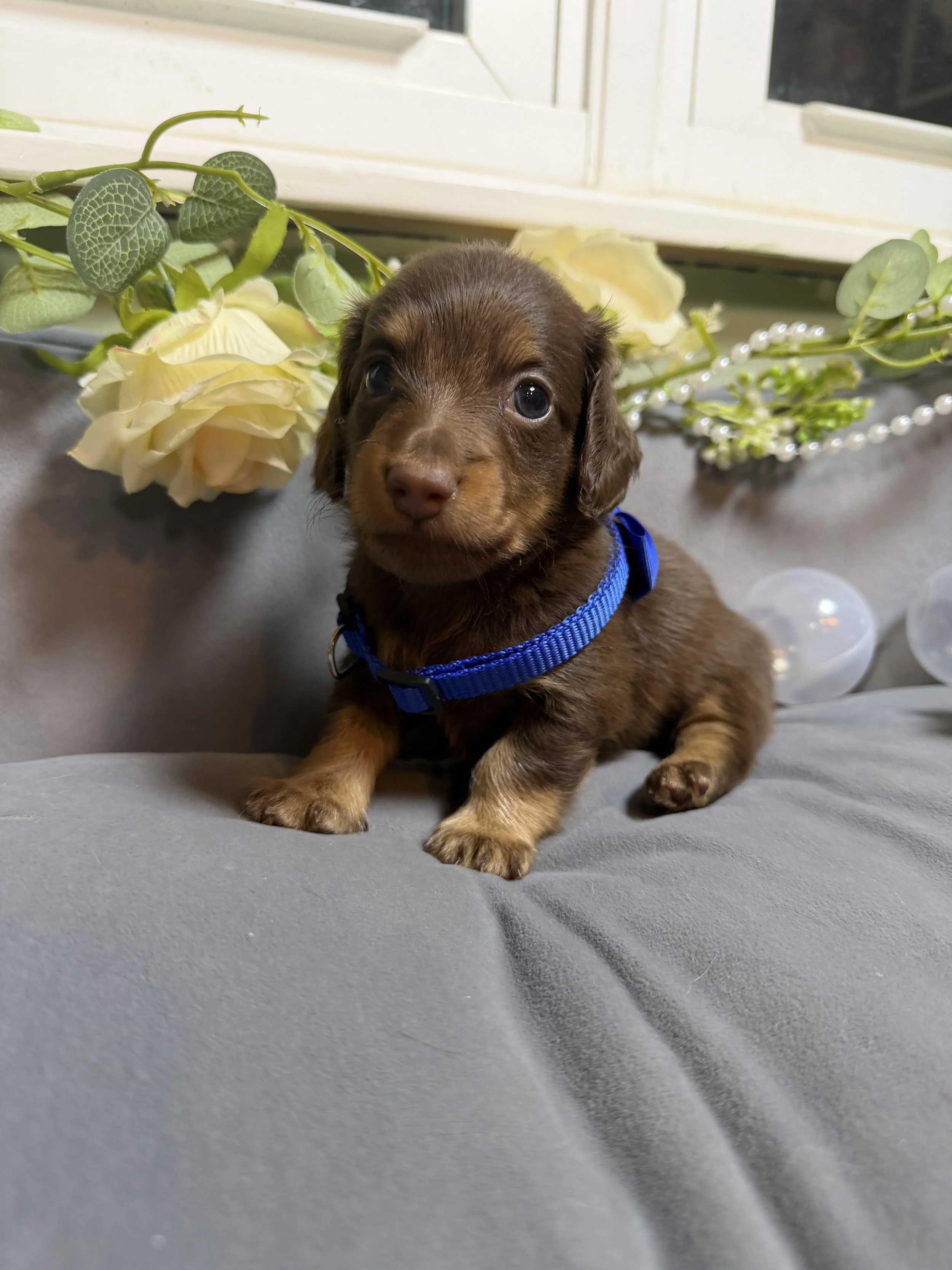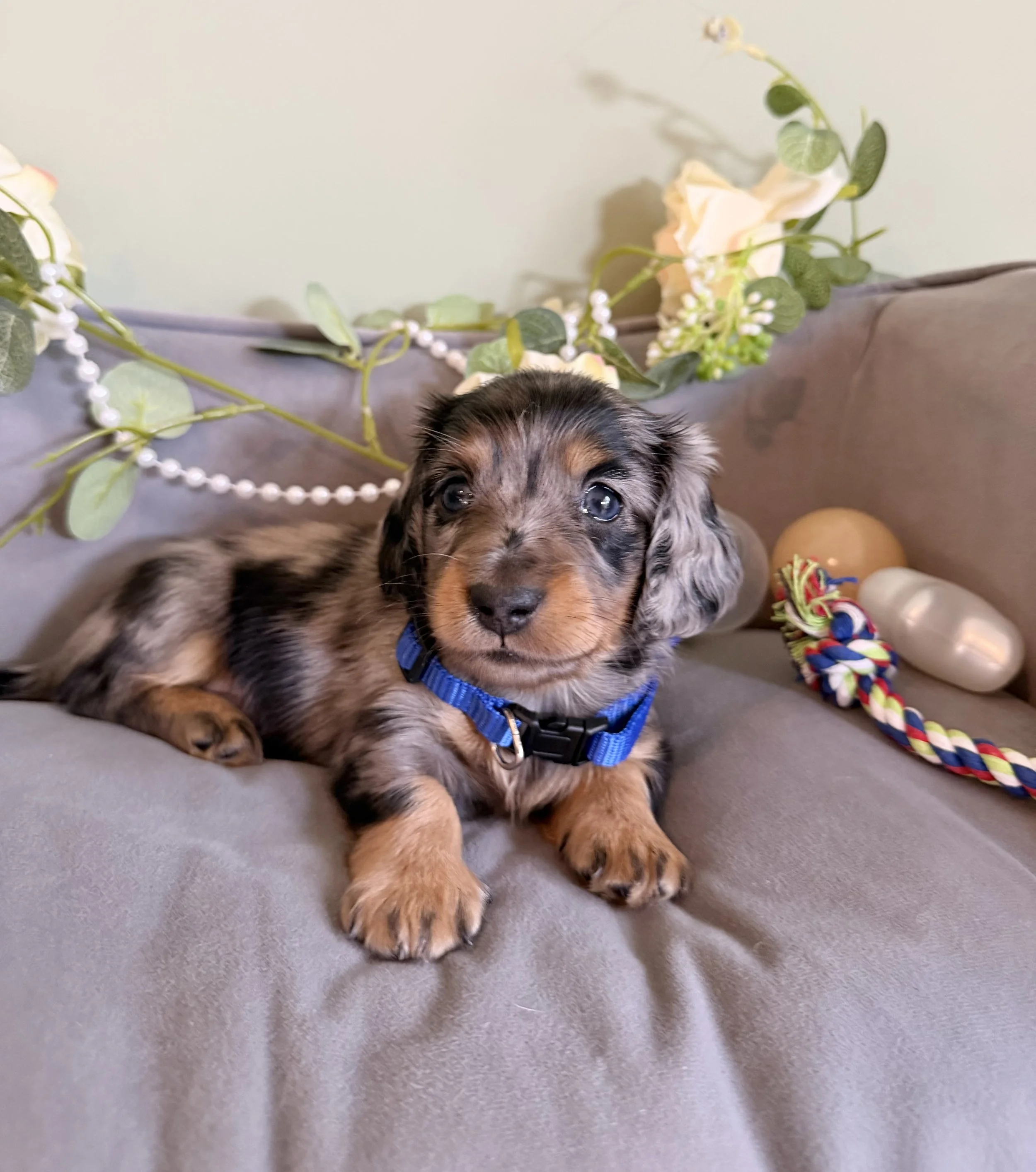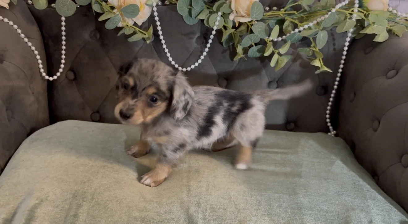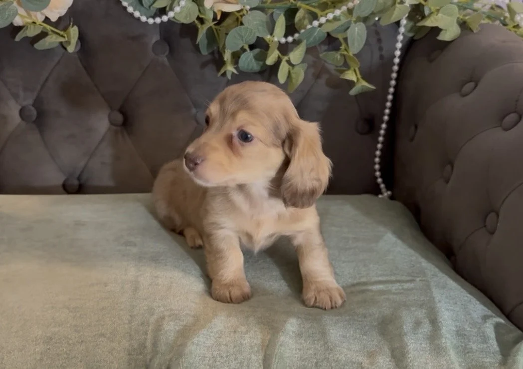 At Wildflower Dachshunds, we update this page regularly with our current available miniature dachshund puppies. Each puppy is vet-checked, up to date on shots, dewormed, and comes with a health guarantee. All of our breeding dogs are health tested and registered. For health and safety reasons, we do not allow exposure or visits until puppies are a minimum of 8 weeks old and vaccinated.