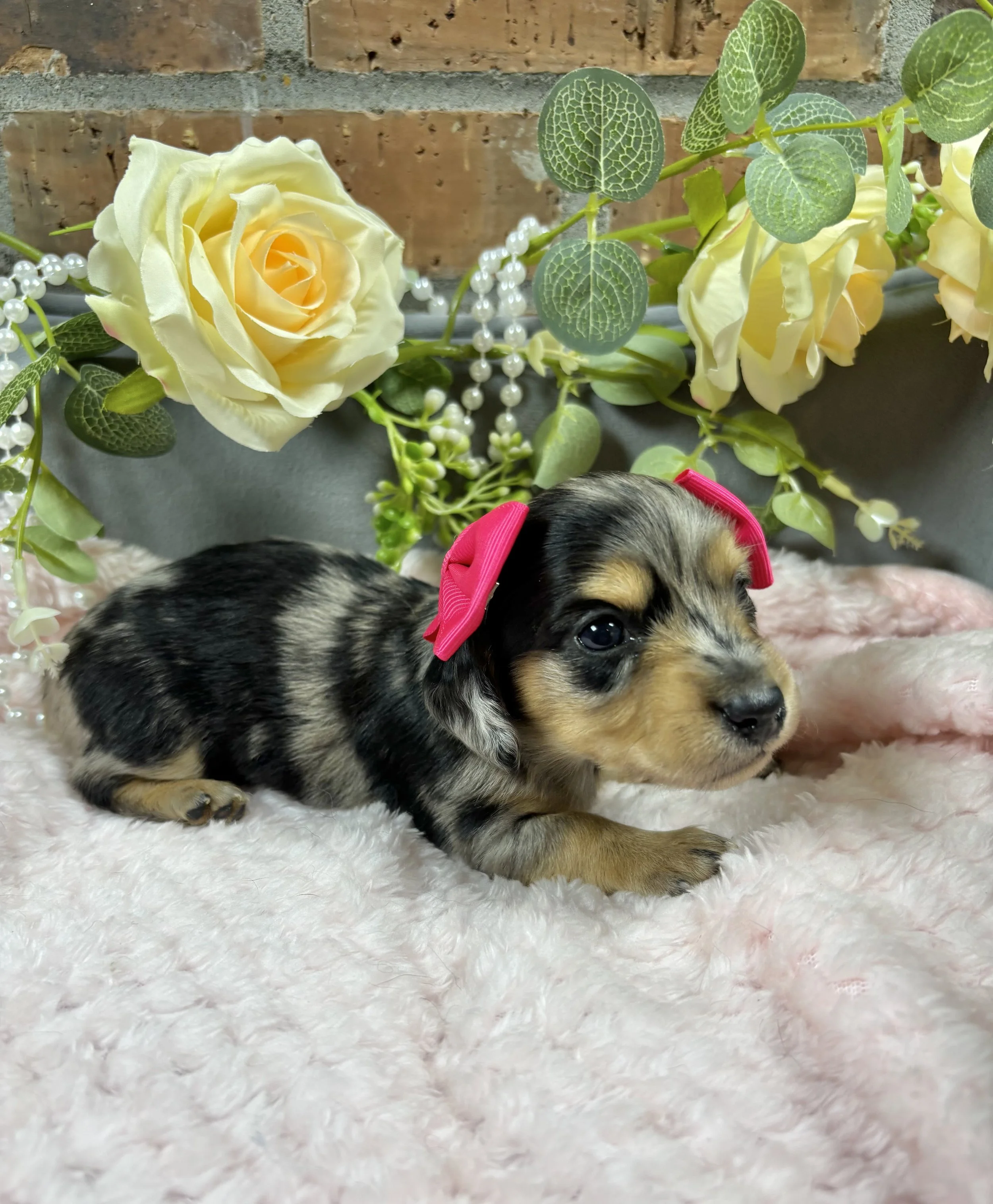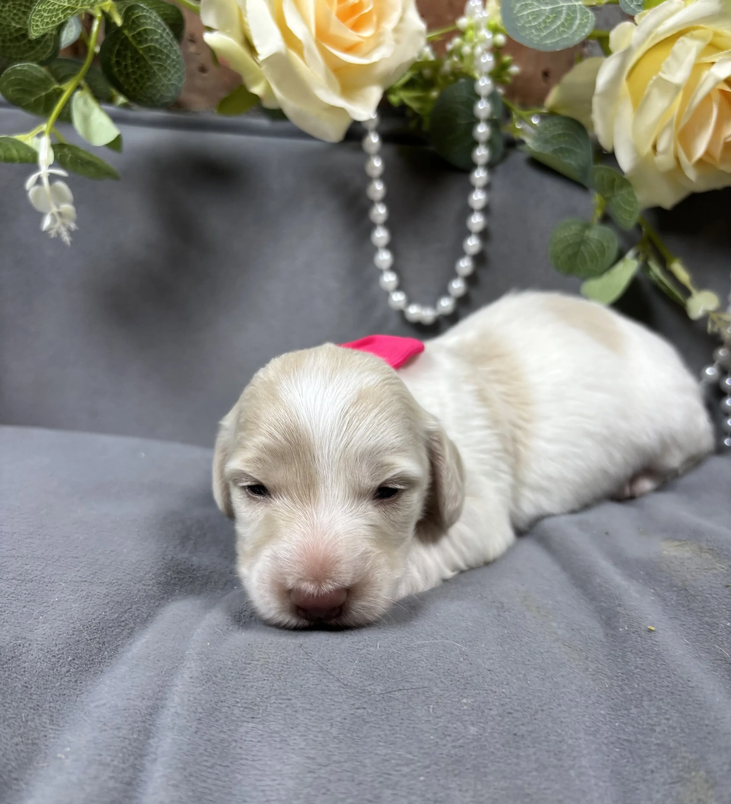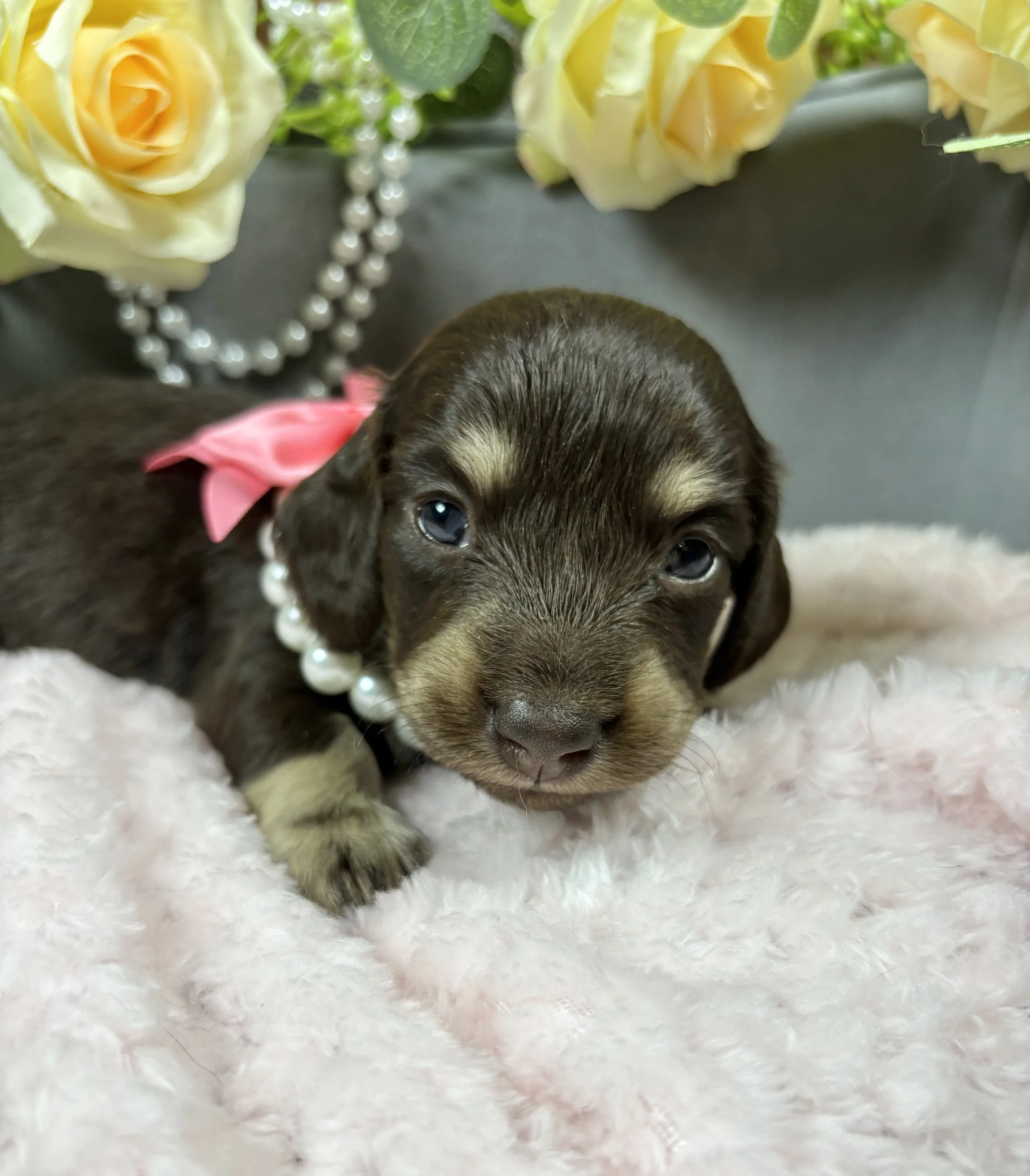 At Wildflower Dachshunds, we update this page regularly with our current available miniature dachshund puppies. Each puppy is vet-checked, up to date on shots, dewormed, and comes with a health guarantee. For health and safety reasons, we do not allow exposure or visits until puppies are a minimum of 8 weeks old and vaccinated.