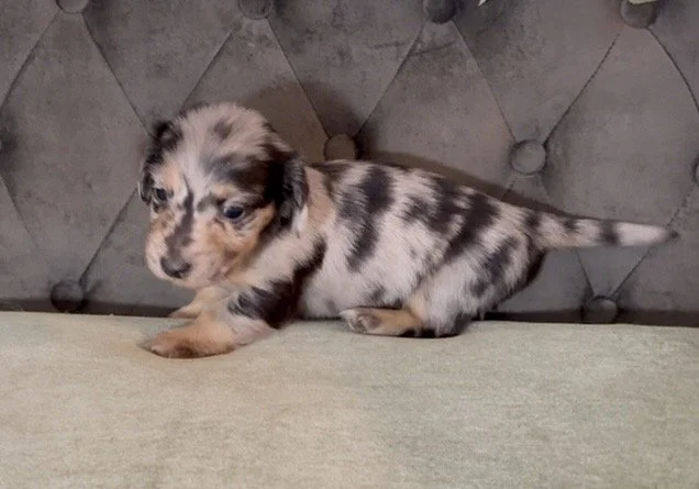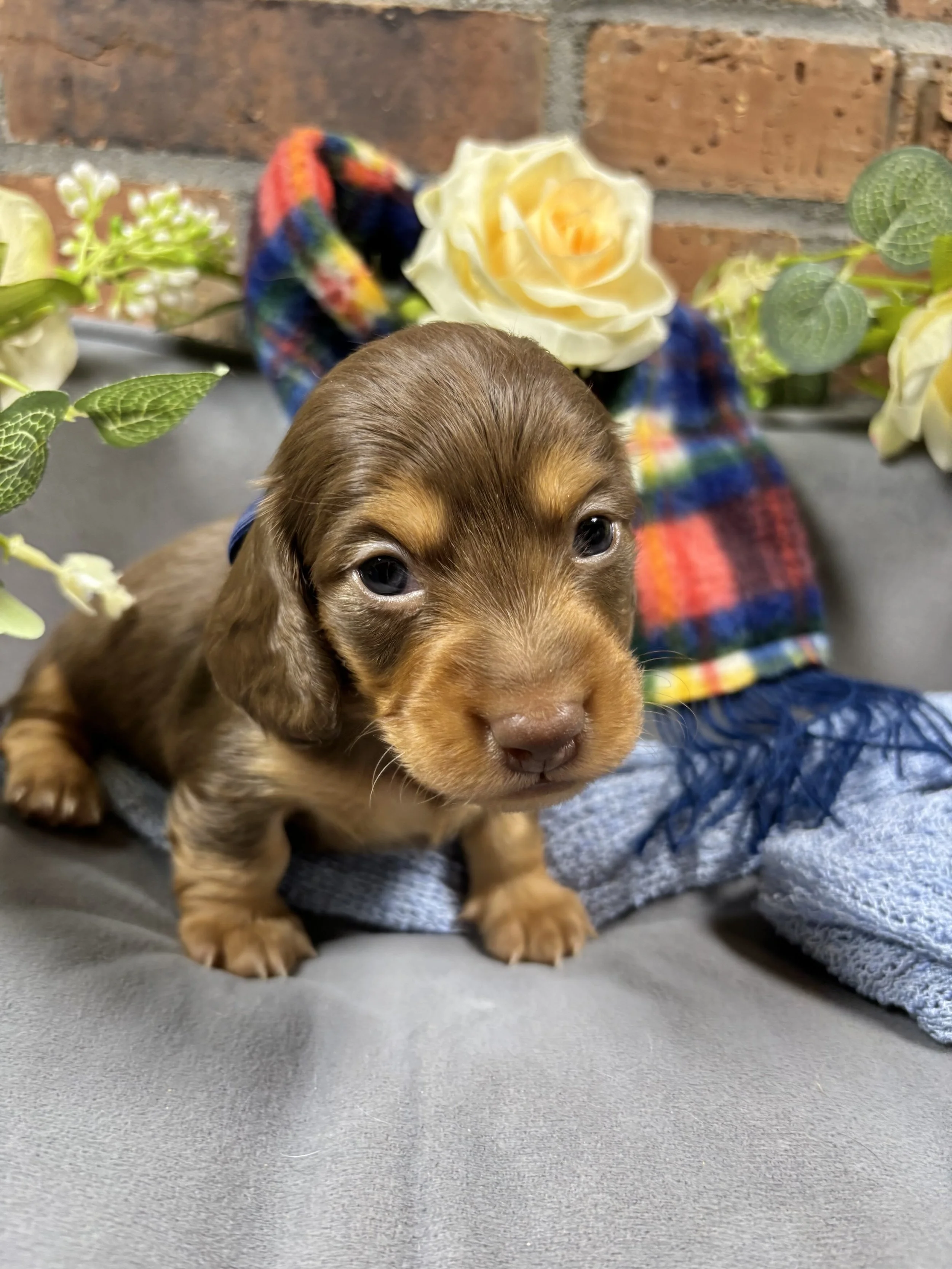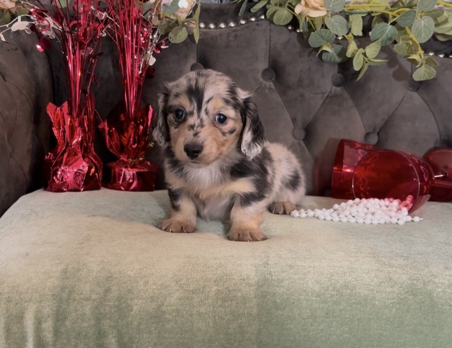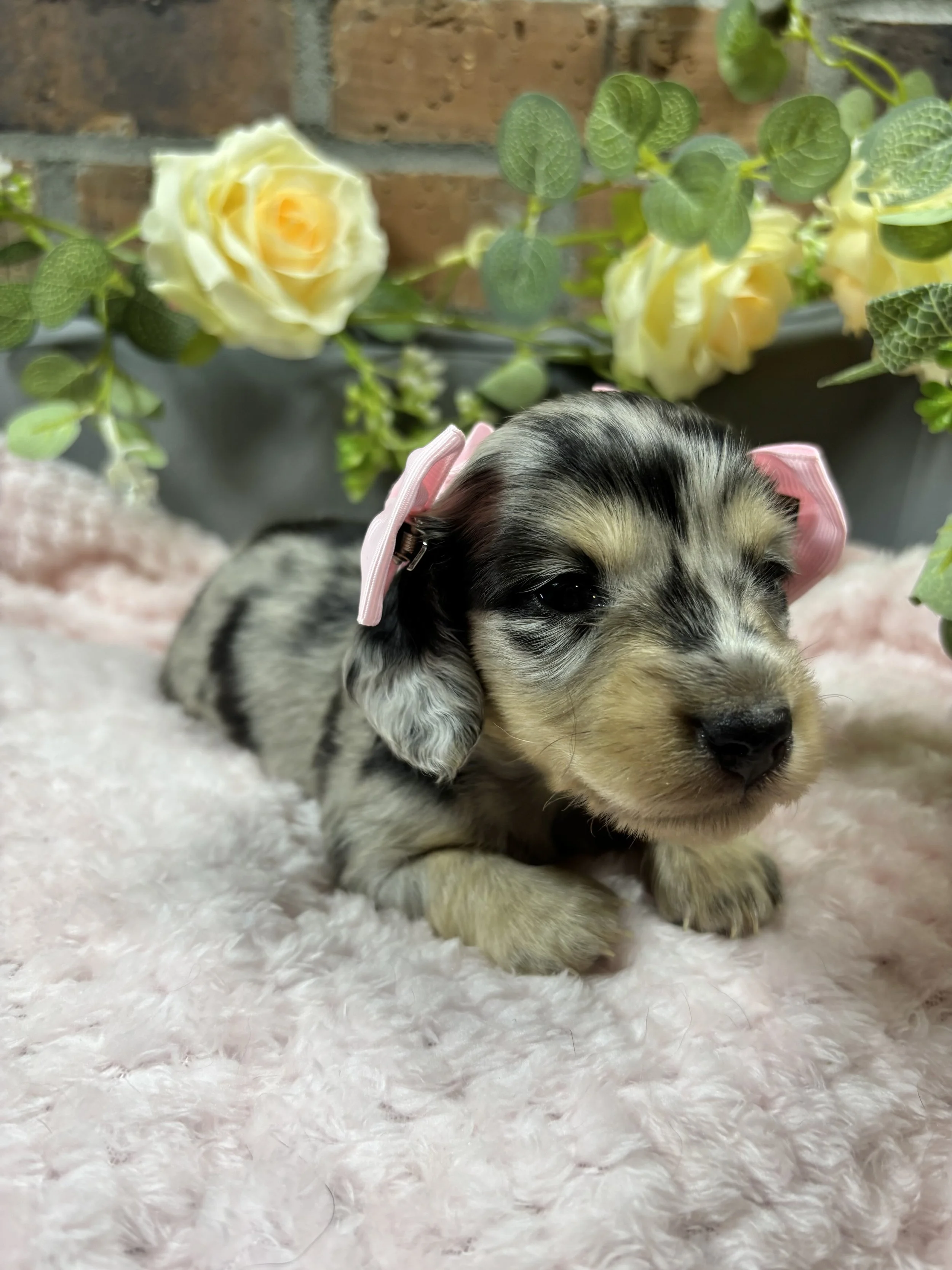 At Wildflower Dachshunds, we update this page regularly with our current available miniature dachshund puppies. Each puppy is vet-checked, up to date on shots, dewormed, and comes with a health guarantee. For health and safety reasons, we do not allow exposure or visits until puppies are a minimum of 8 weeks old and vaccinated.
