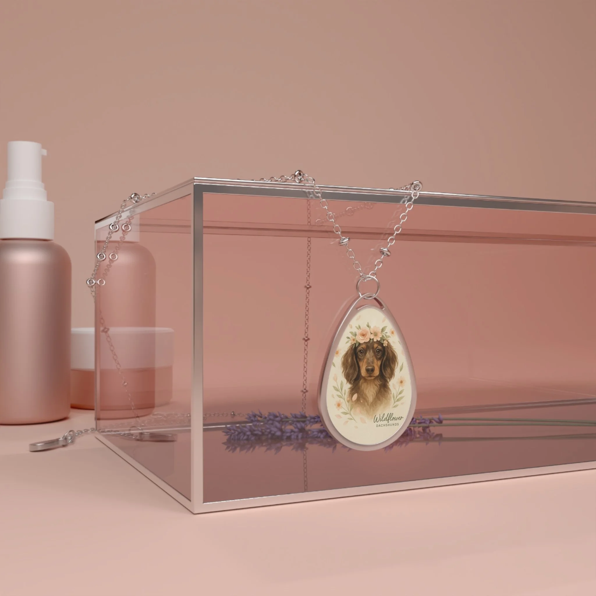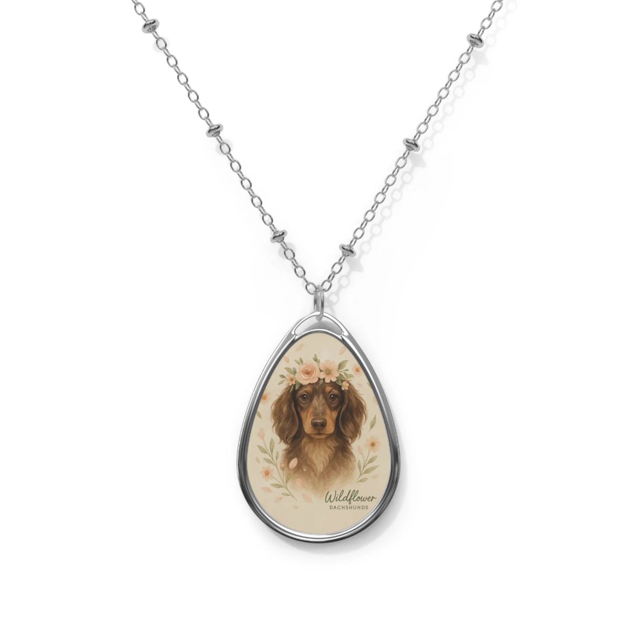Blooming Doxie Floral Dog Portrait Necklace, Personalized Pet Jewelry, Dog Lover Gift, Oval Pendant, Animal Lover Accessory