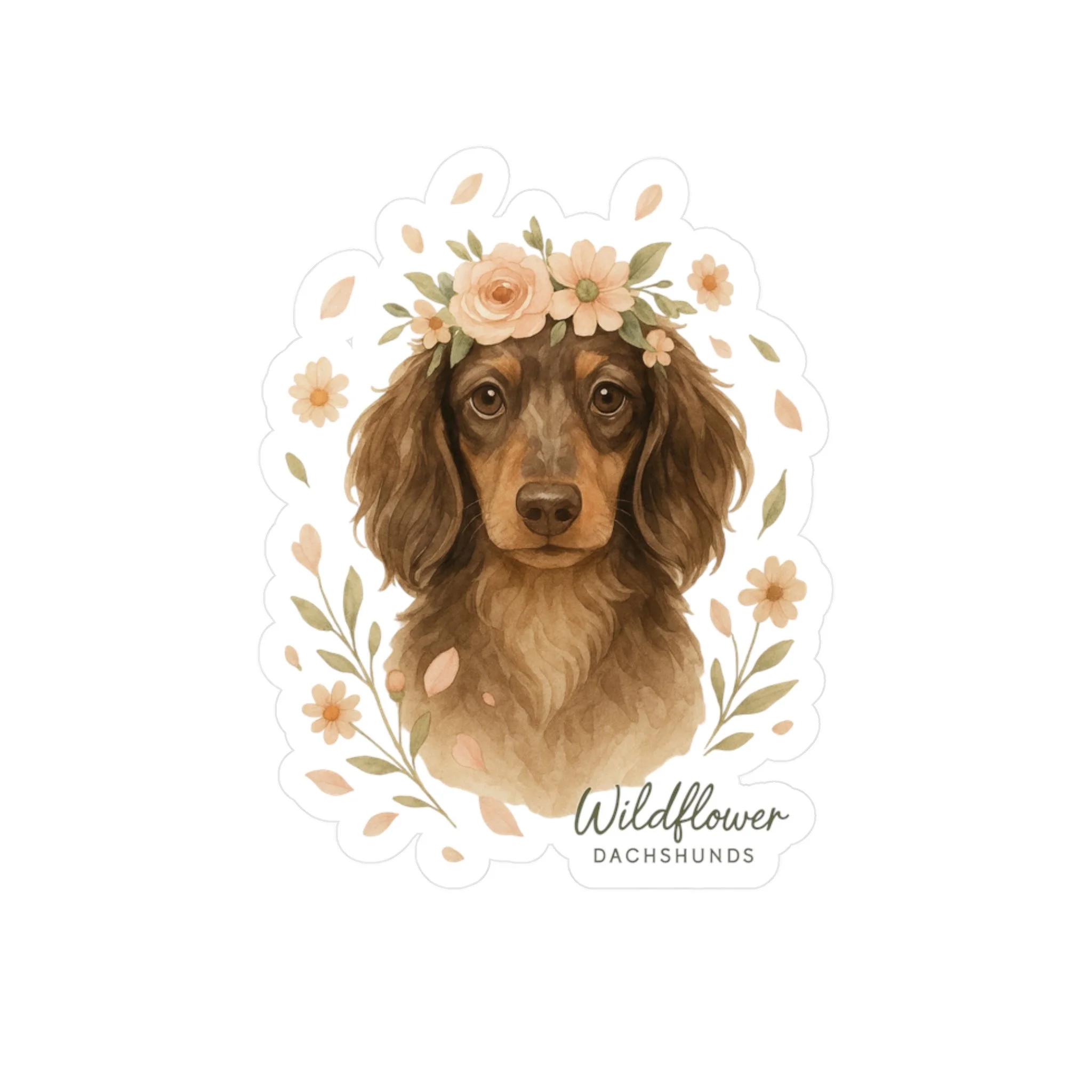 Blooming Doxie Kiss-Cut Vinyl Decal | Cute Dog Sticker for Pet Lovers, Home Decor, Gifts, Laptop, Water Bottle