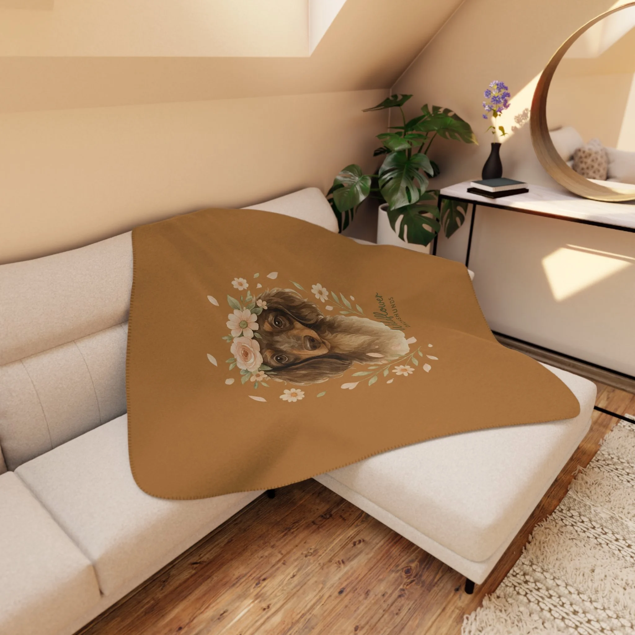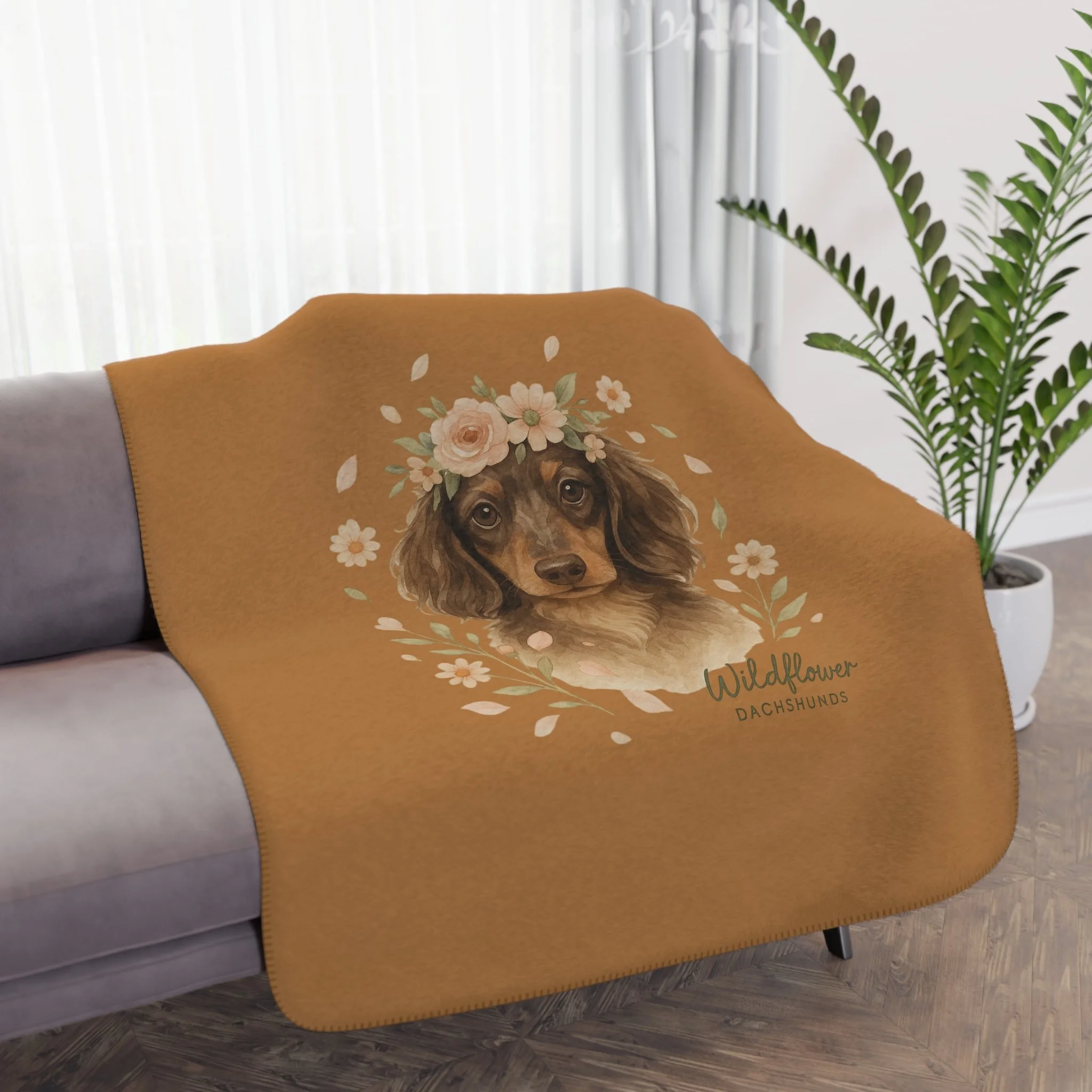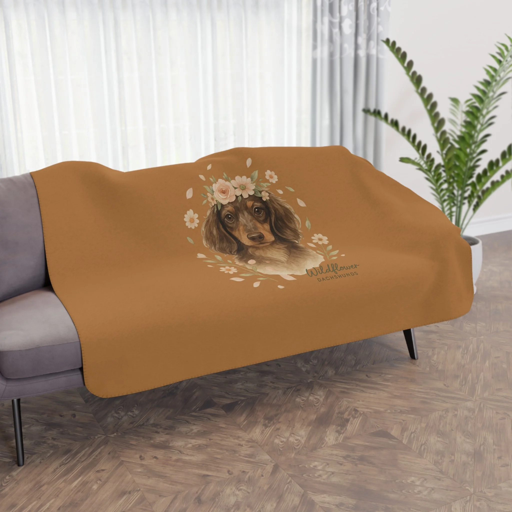 Cozy Tan Sherpa Blanket with Wildflower Dachshund Design - Perfect for Dog Lovers, Home Decor, Gifts, Pet Enthusiasts, Warm Throw