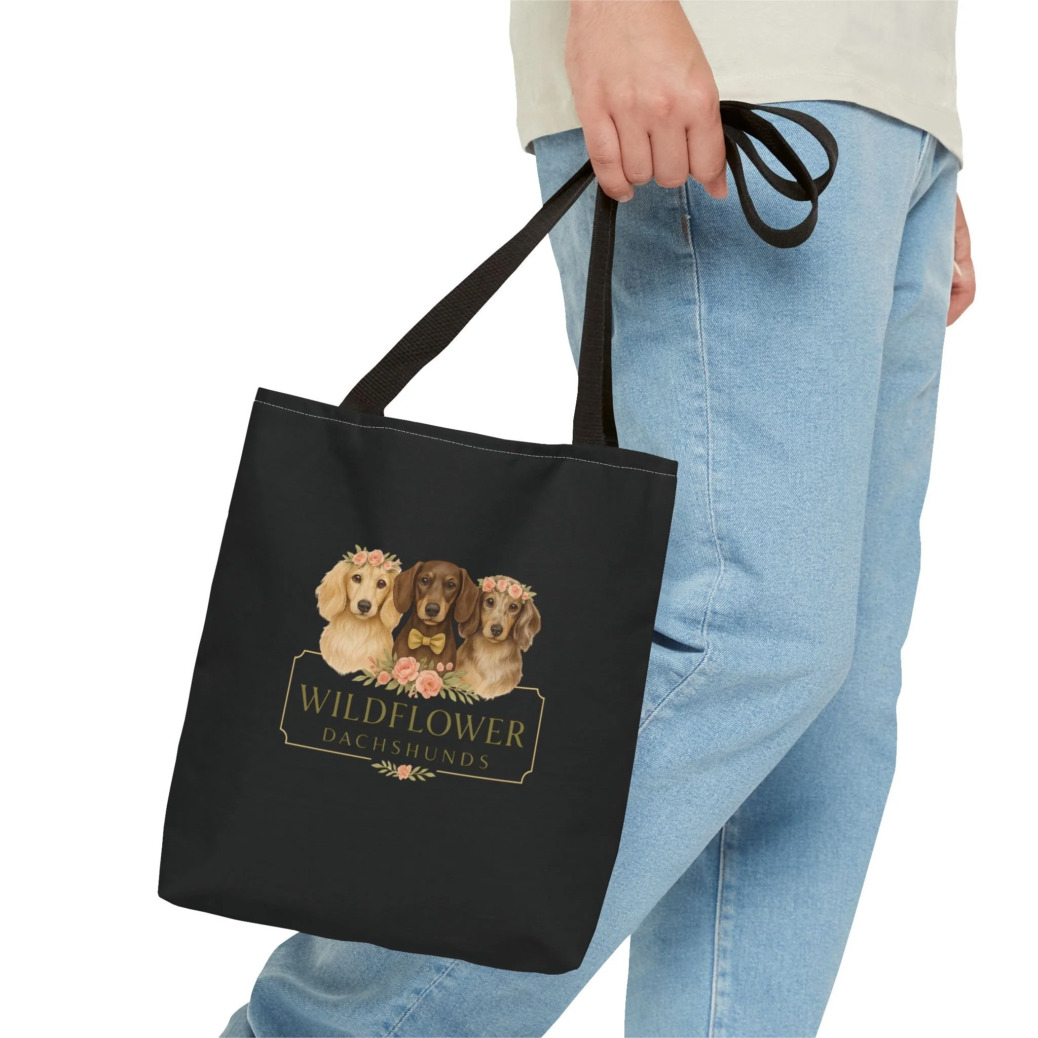 Wildflower Dachshunds Tote Bag – Boho Dog Lover Gift, Cute Wiener Dog Bag, Floral Dachshund Art Tote, Pet Mom Accessory, Reusable Market Bag