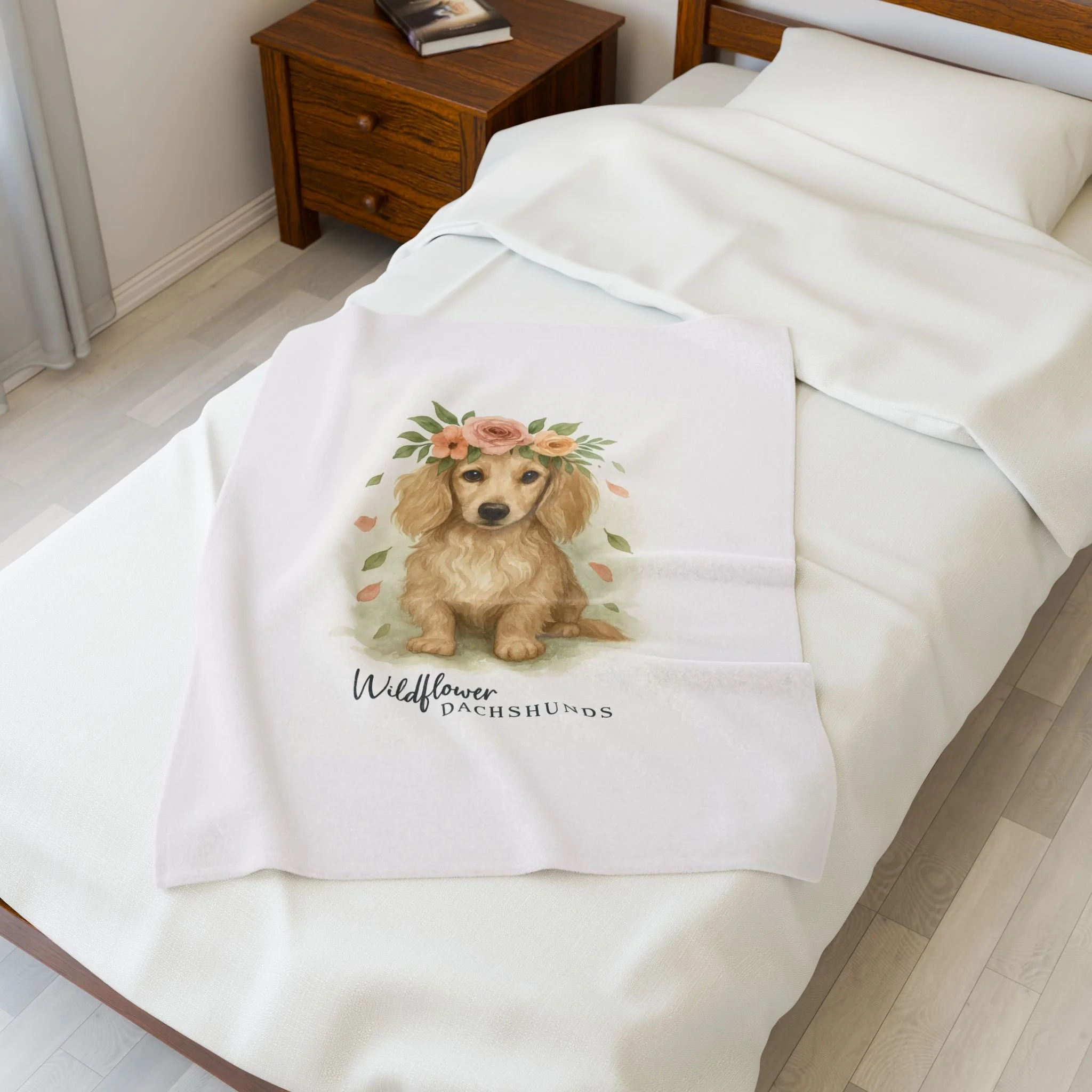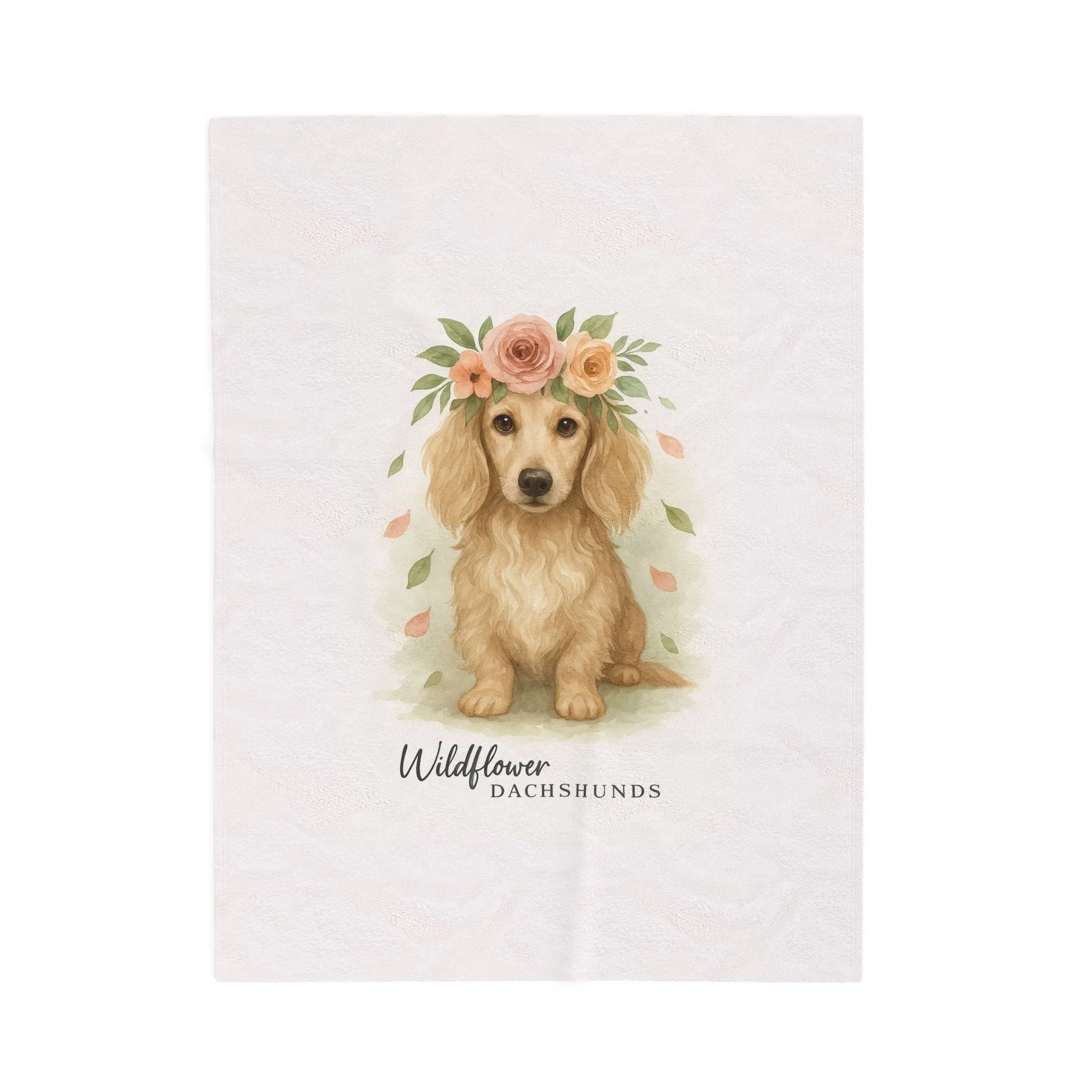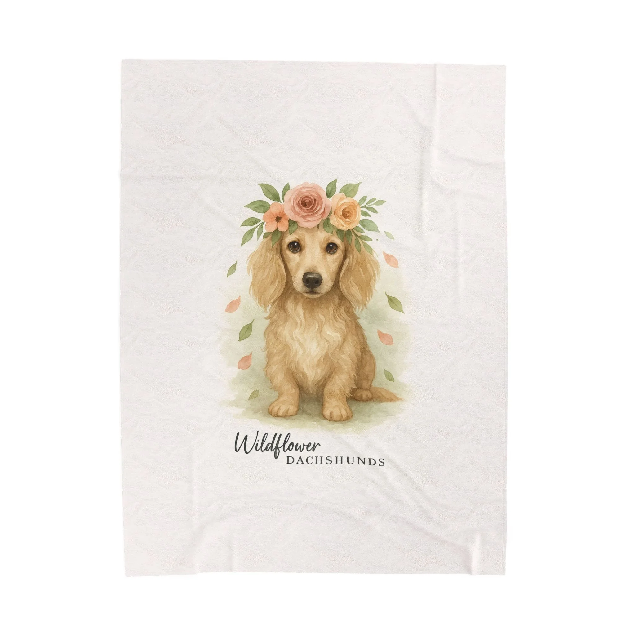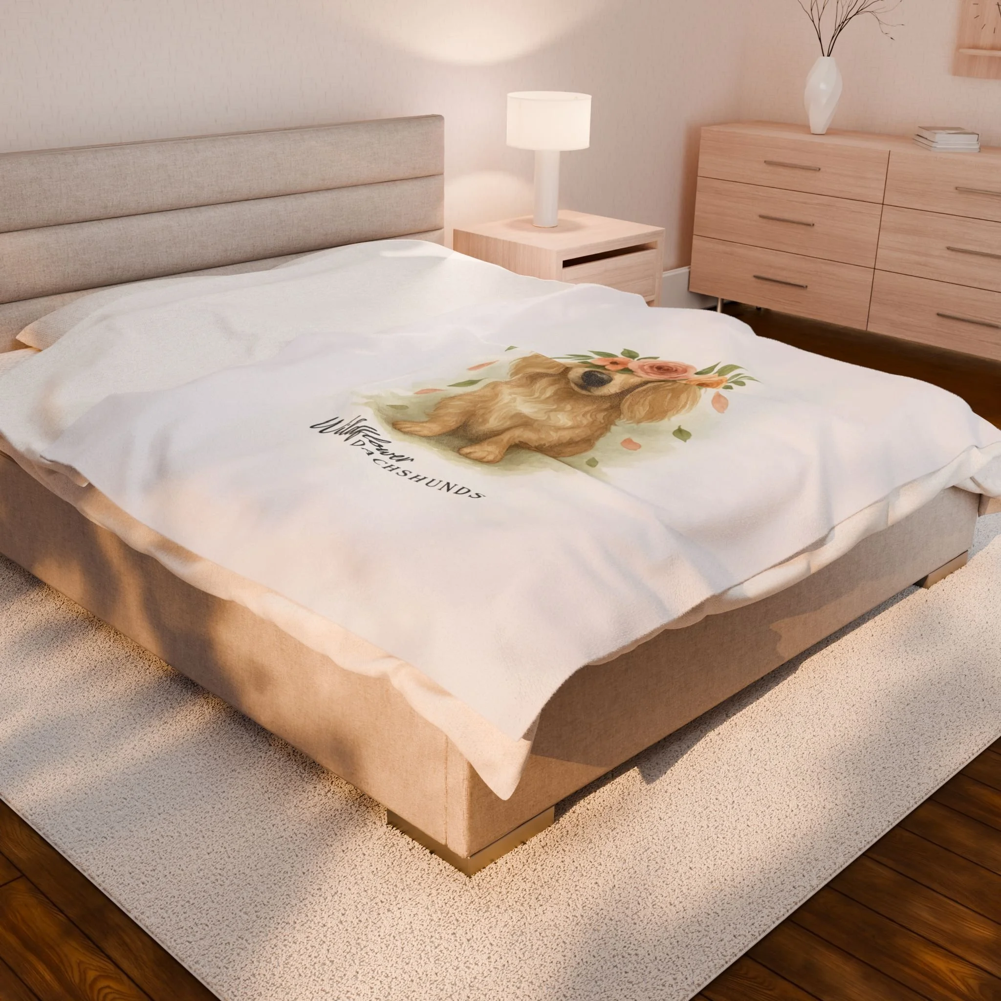 Flower Crown Dachshund Cozy Velveteen Plush Blanket for Ultimate Comfort, Soft Throw for Home Decor, Gift for New Parents, Perfect for Camping & Movie Nights
