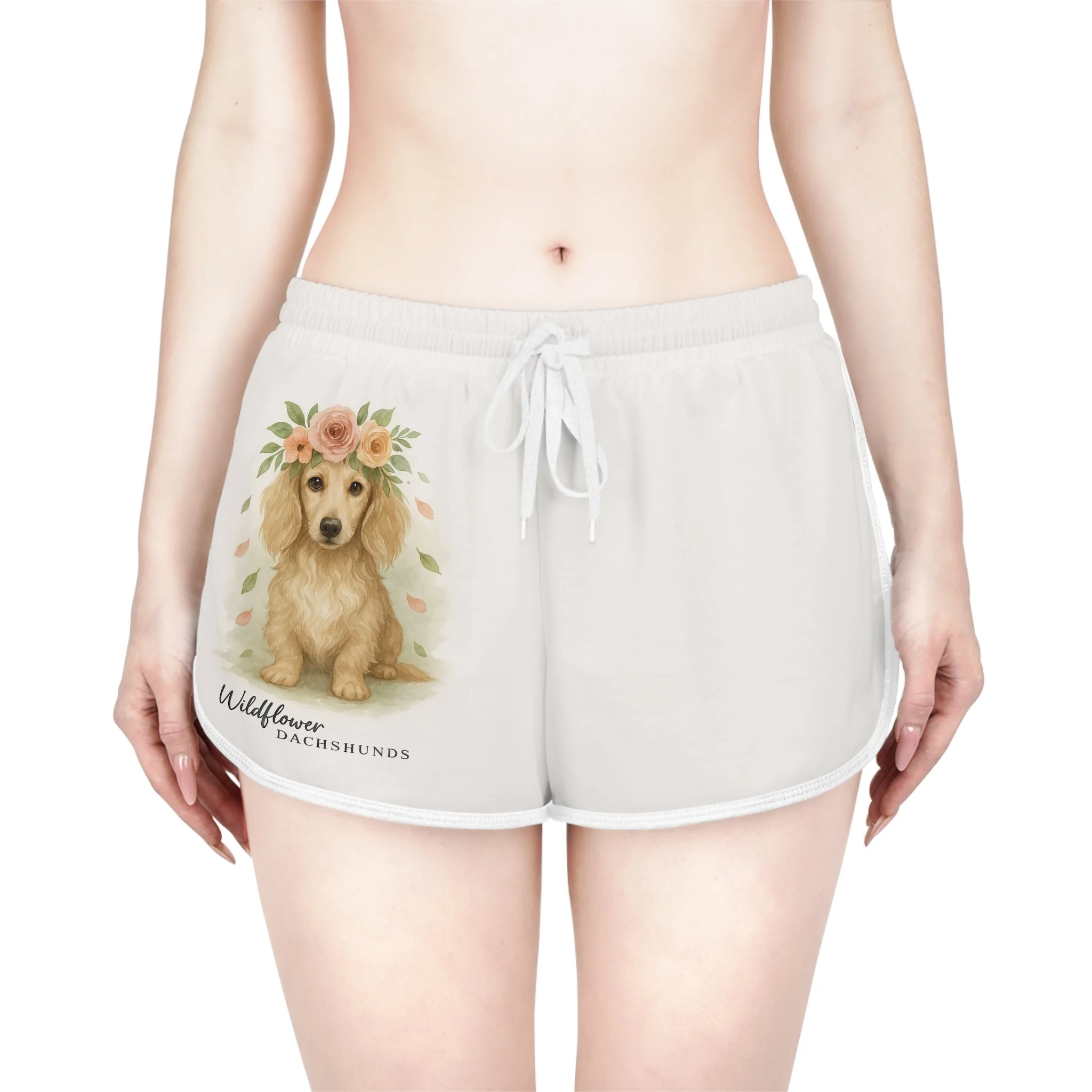 Flower Crown Dachshund Women's Relaxed Shorts, Cute Dog Lover Apparel, Summer Lounge Wear, Pet Lover Gift, AOP Dog Shorts