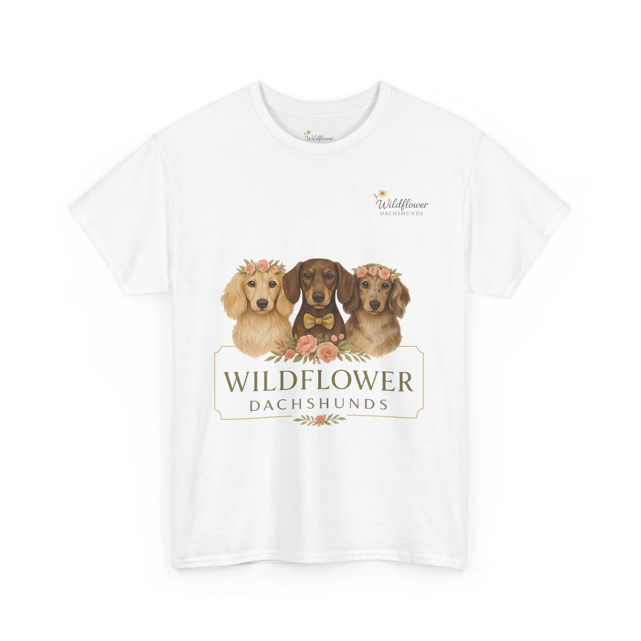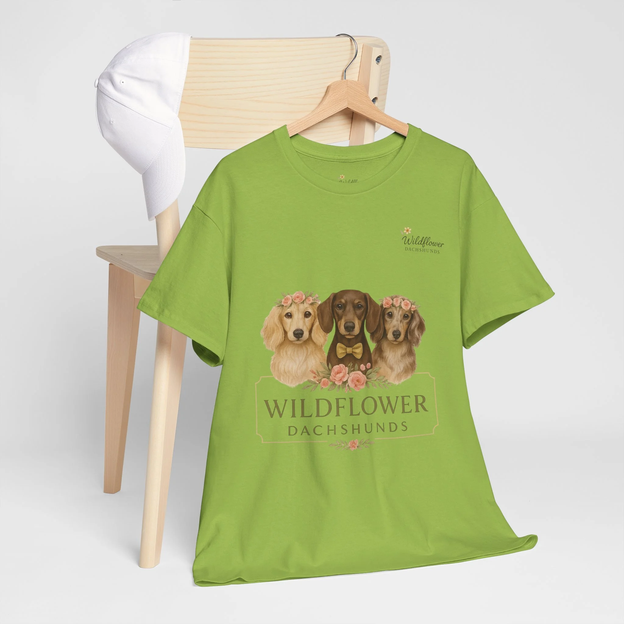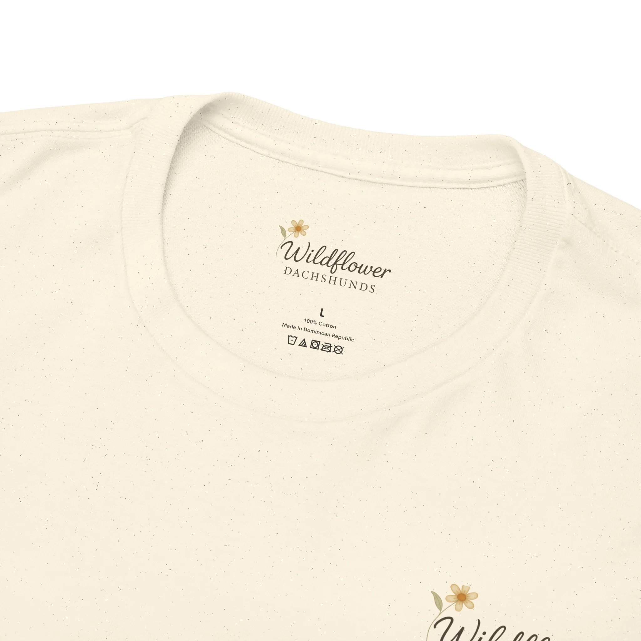 Introducing a stylish unisex heavy cotton tee that brings comfort and charm to any wardrobe. This tee features a delightful design of adorable Dachshunds adorned with wildflowers, perfect for animal lovers and anyone who appreciates cute artwork. Ideal for casual outings, gatherings, or even cozy nights in, this tee can elevate your everyday style while providing a relaxed fit. It's an excellent choice for gifts during occasions such as birthdays, holidays, or simply to uplift a friend’s spirits. Celebrate the love for pets with this delightful tee, perfect for anyone who wants to express their passion in a fun and casual way.