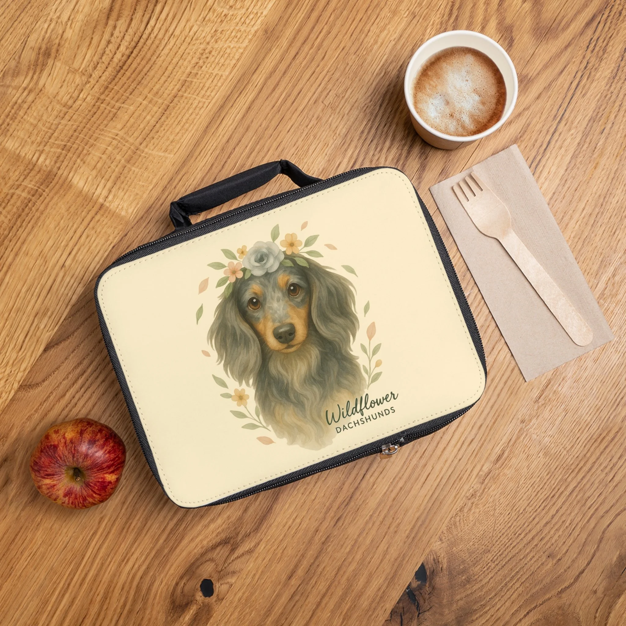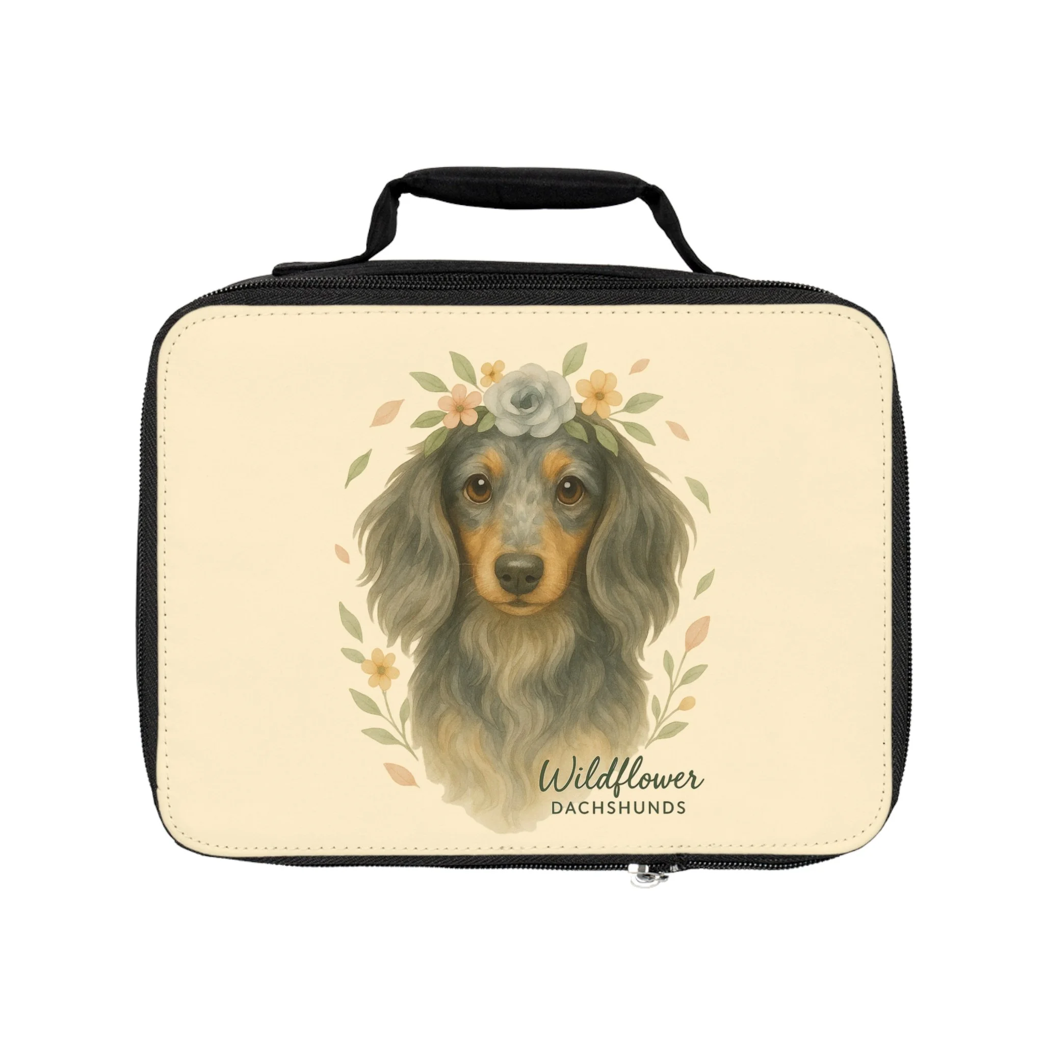 Silver Dachshunds Lunch Bag | Cute Dog Lunchbox | Floral Pet Carrier | Creative Gift for Dog Lovers | Animal-Inspired Tote