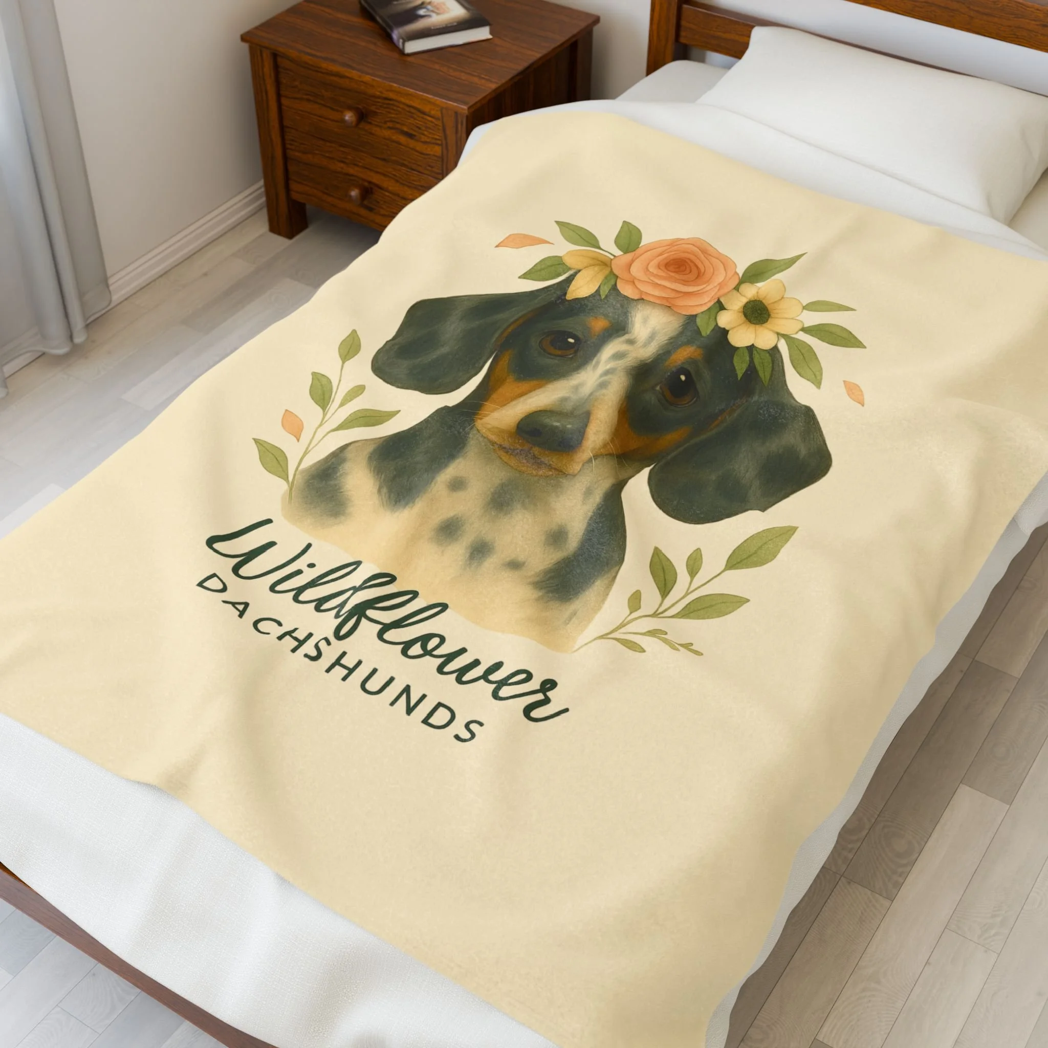 Spotted Wildflower Dachshund Cozy Velveteen Plush Blanket for Ultimate Comfort, Soft Throw for Home Decor, Gift for New Parents, Perfect for Camping & Movie Nights