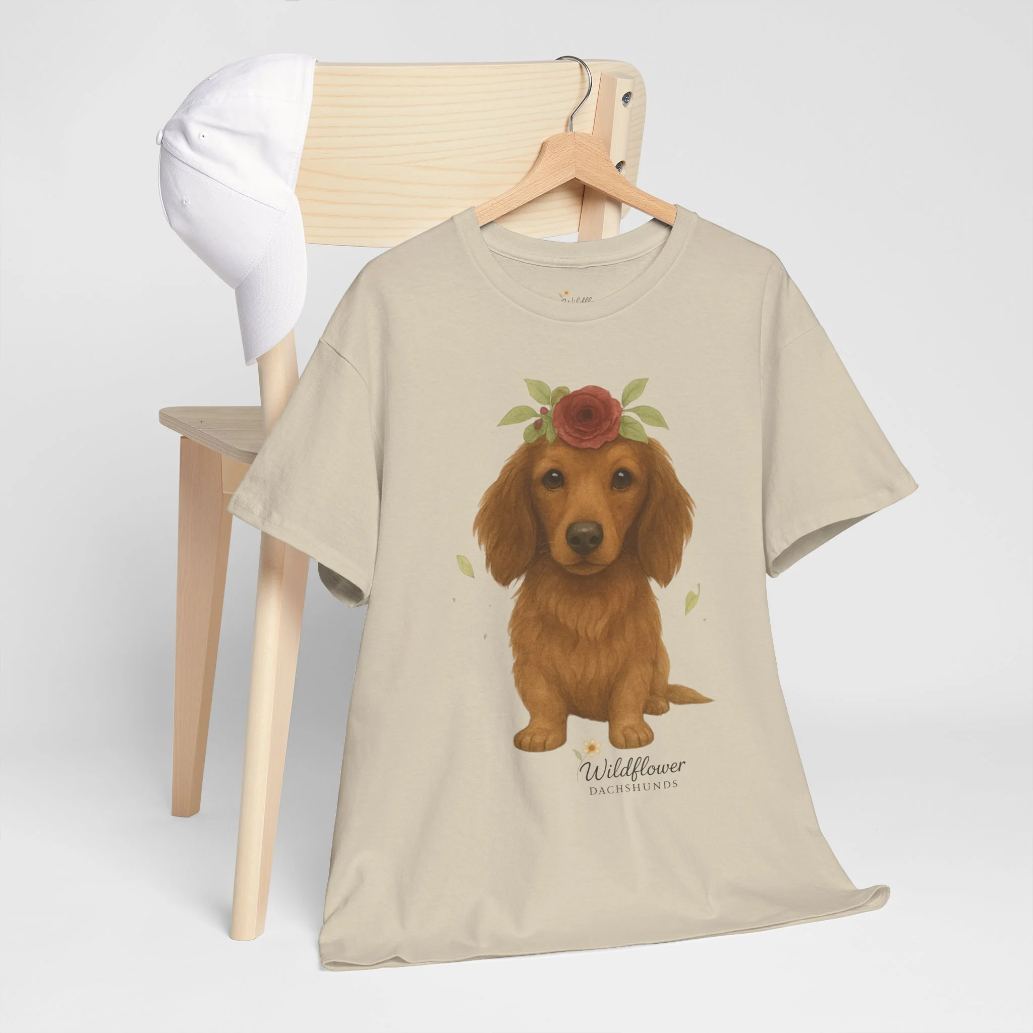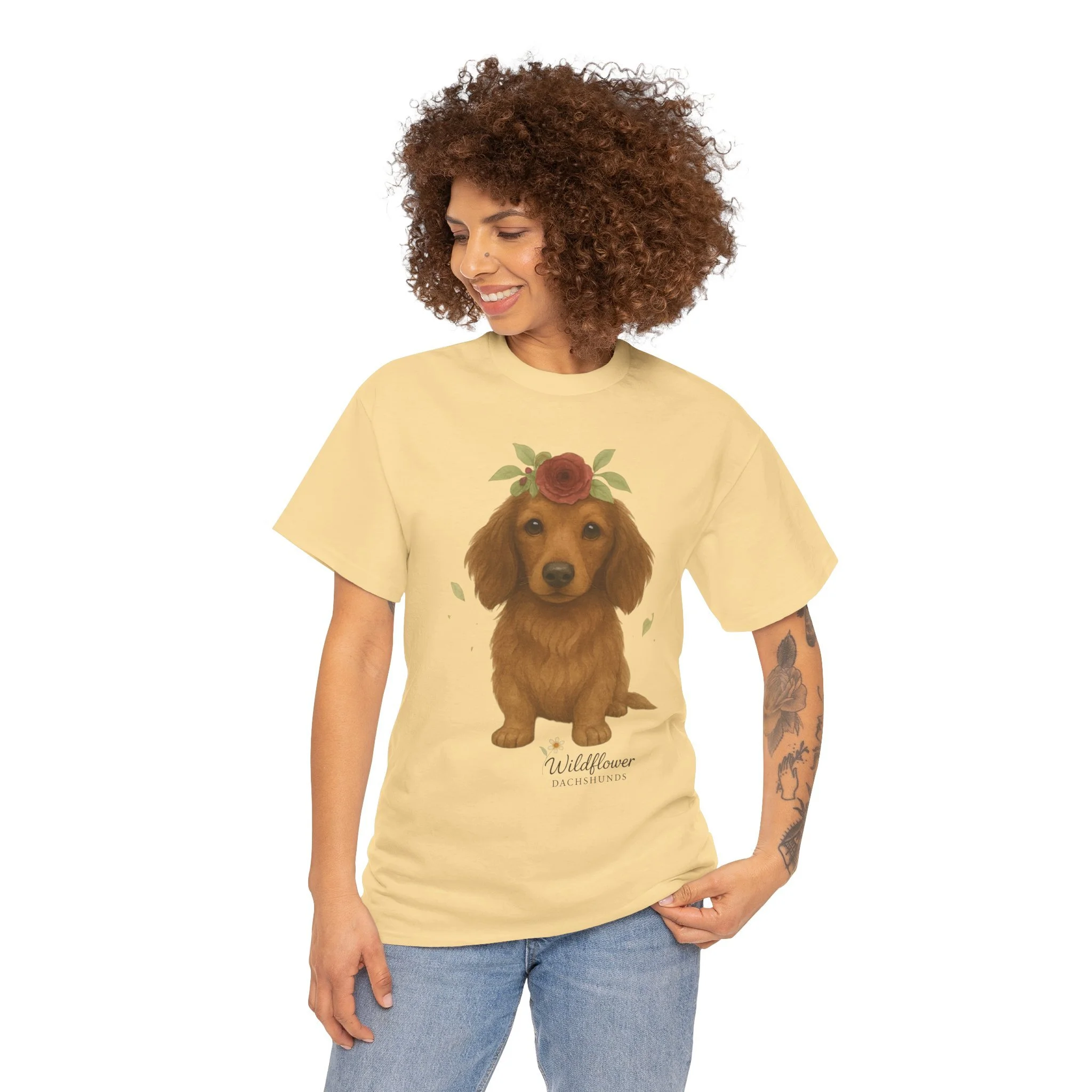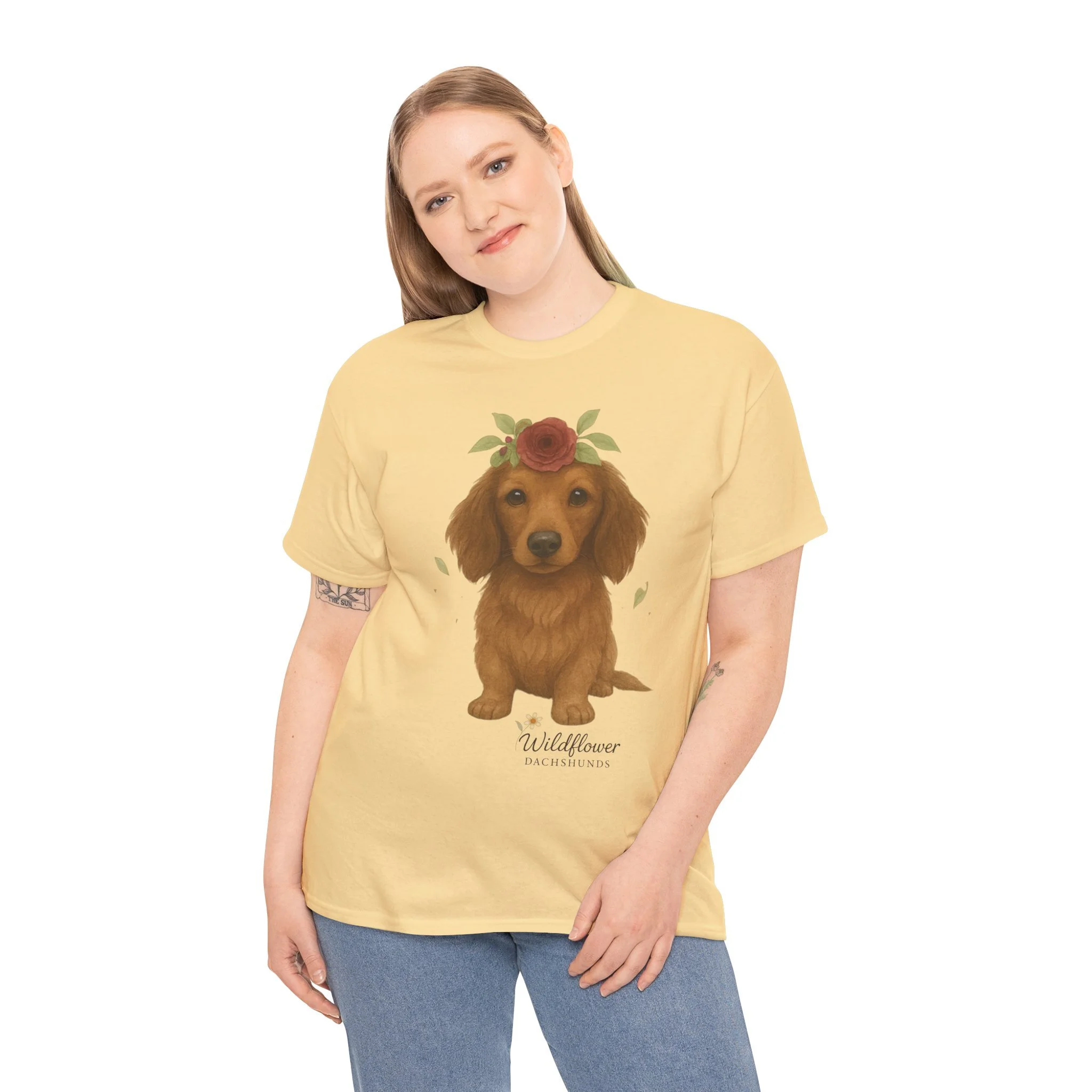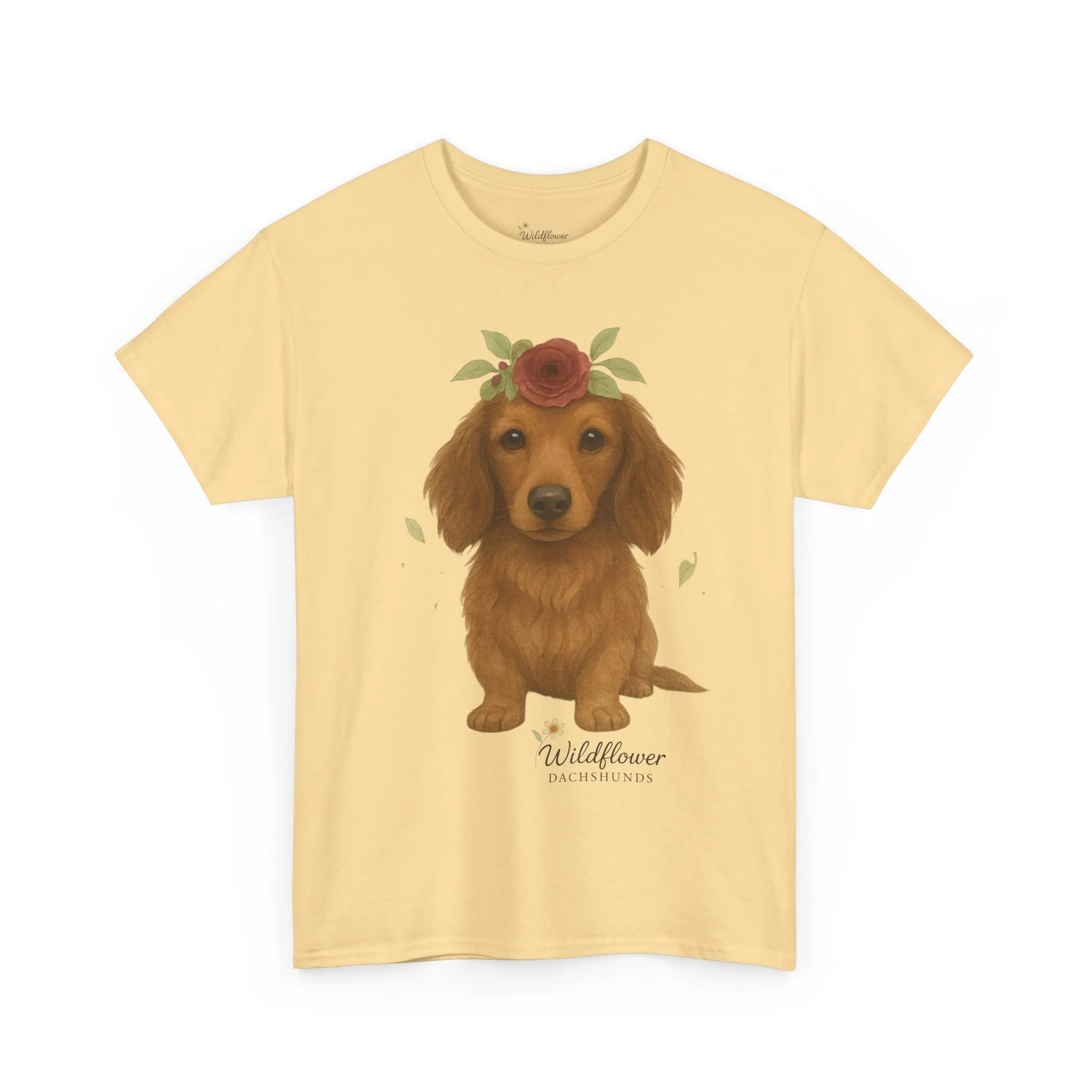 Introducing a stylish unisex heavy cotton tee that brings comfort and charm to any wardrobe. This tee features a delightful design of adorable Dachshunds adorned with wildflowers, perfect for animal lovers and anyone who appreciates cute artwork. Ideal for casual outings, gatherings, or even cozy nights in, this tee can elevate your everyday style while providing a relaxed fit. It's an excellent choice for gifts during occasions such as birthdays, holidays, or simply to uplift a friend’s spirits. Celebrate the love for pets with this delightful tee, perfect for anyone who wants to express their passion in a fun and casual way.