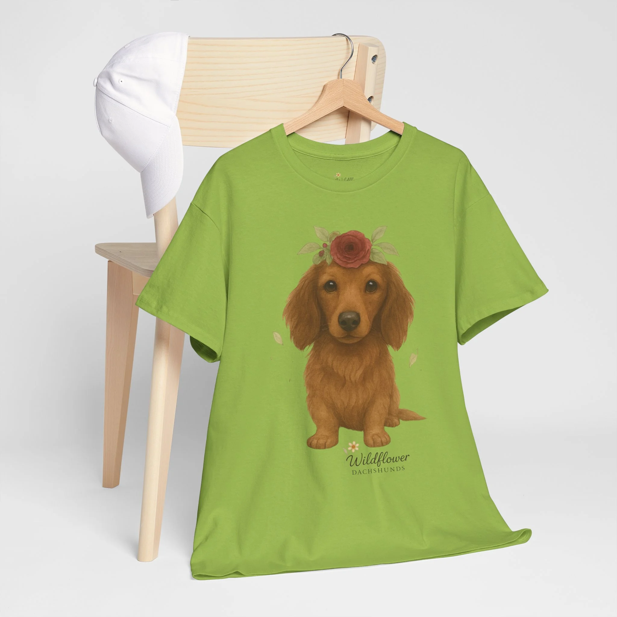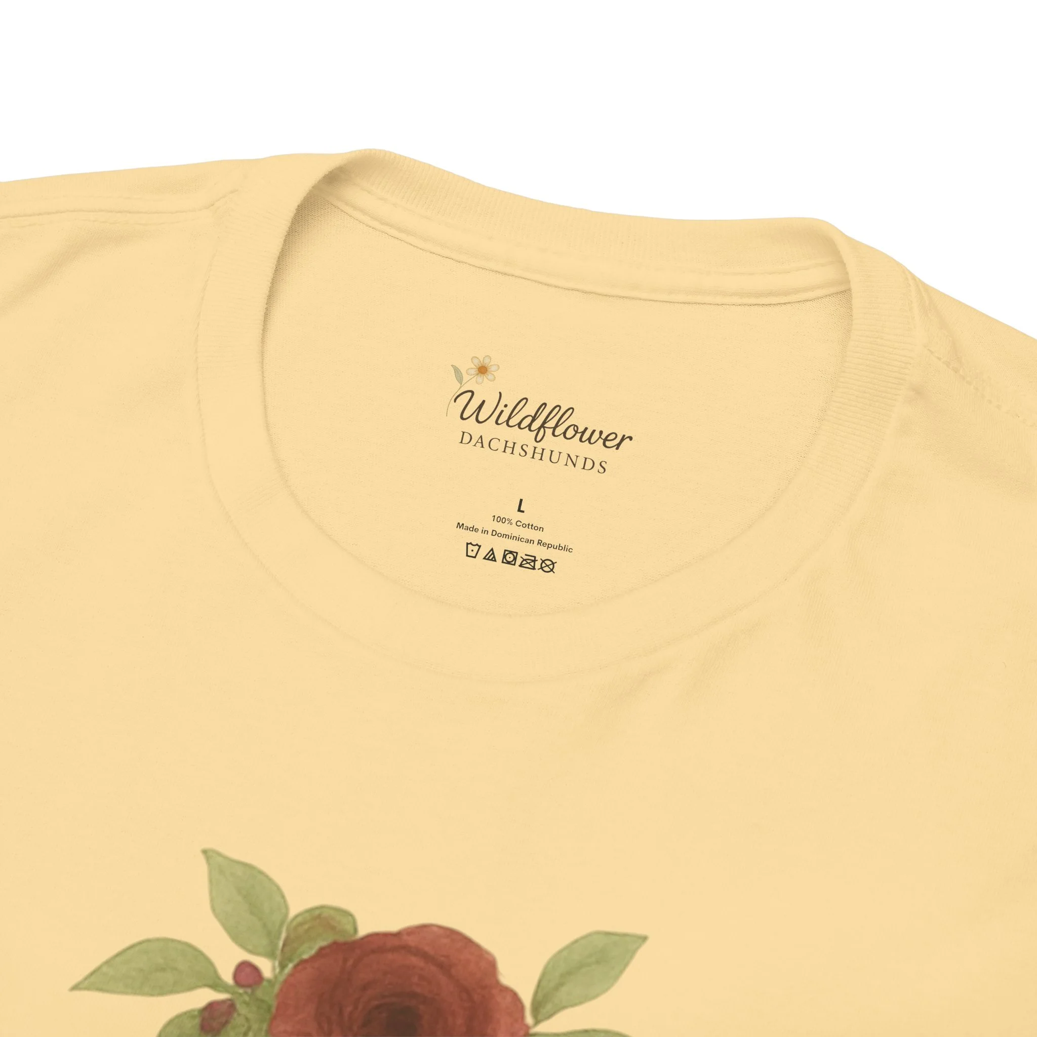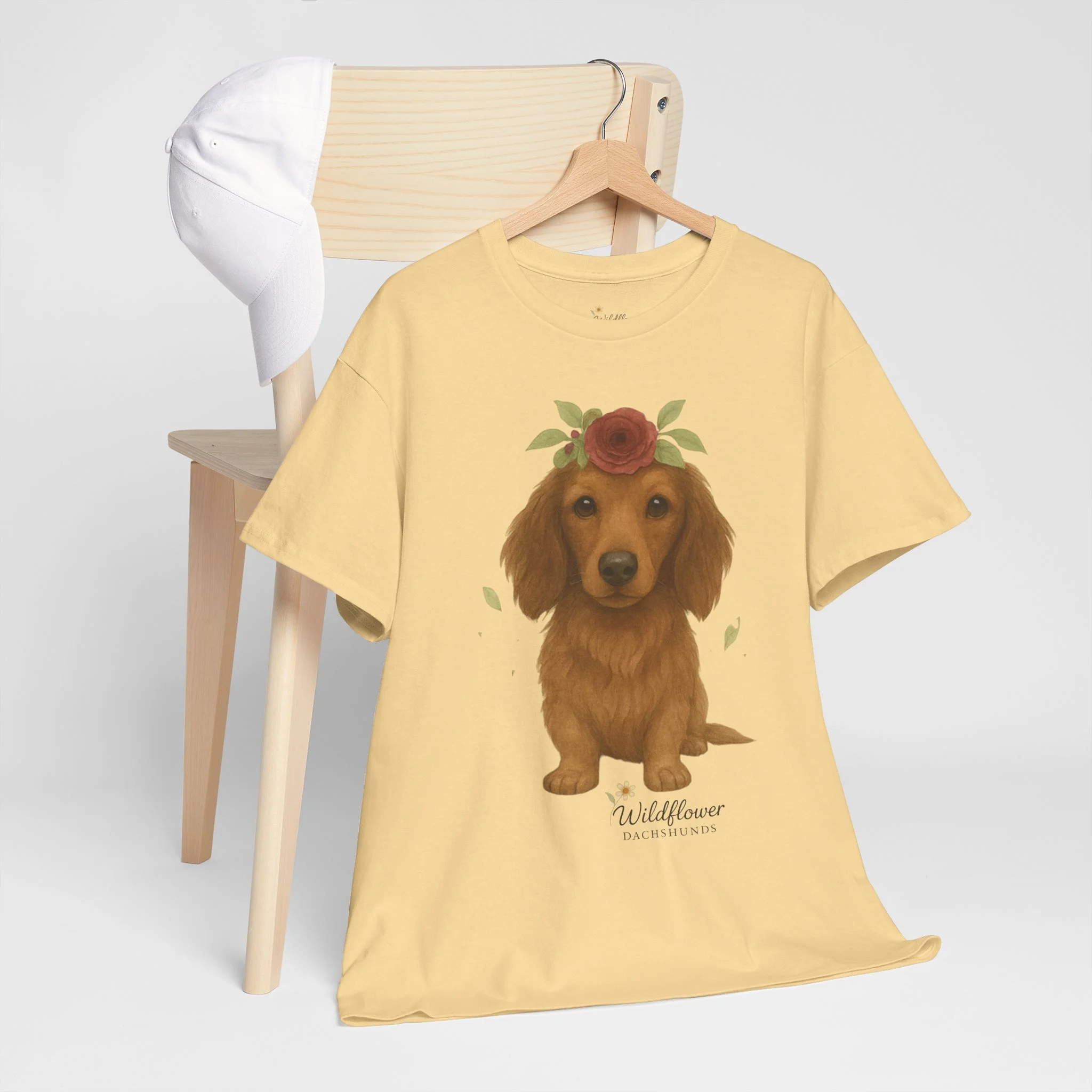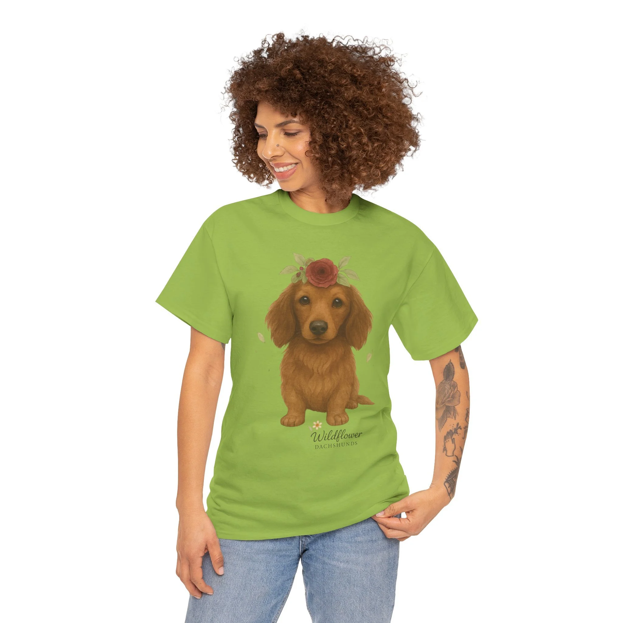 Introducing a stylish unisex heavy cotton tee that brings comfort and charm to any wardrobe. This tee features a delightful design of adorable Dachshunds adorned with wildflowers, perfect for animal lovers and anyone who appreciates cute artwork. Ideal for casual outings, gatherings, or even cozy nights in, this tee can elevate your everyday style while providing a relaxed fit. It's an excellent choice for gifts during occasions such as birthdays, holidays, or simply to uplift a friend’s spirits. Celebrate the love for pets with this delightful tee, perfect for anyone who wants to express their passion in a fun and casual way.