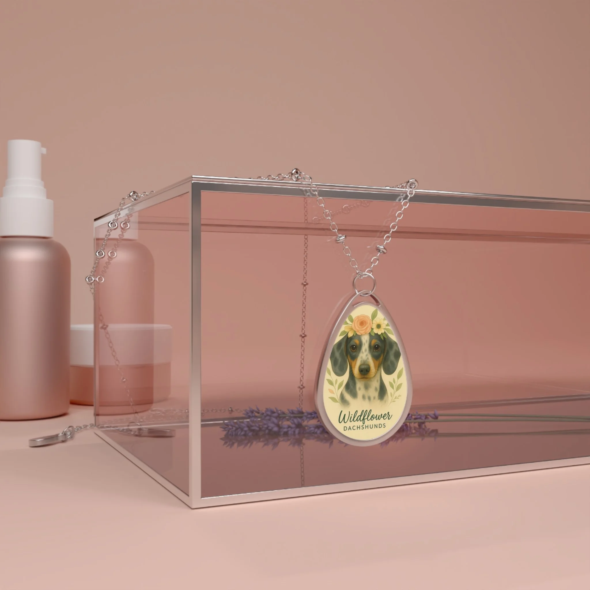 Spotted Wildflower Dachshund Floral Dog Portrait Necklace, Personalized Pet Jewelry, Dog Lover Gift, Oval Pendant, Animal Lover Accessory