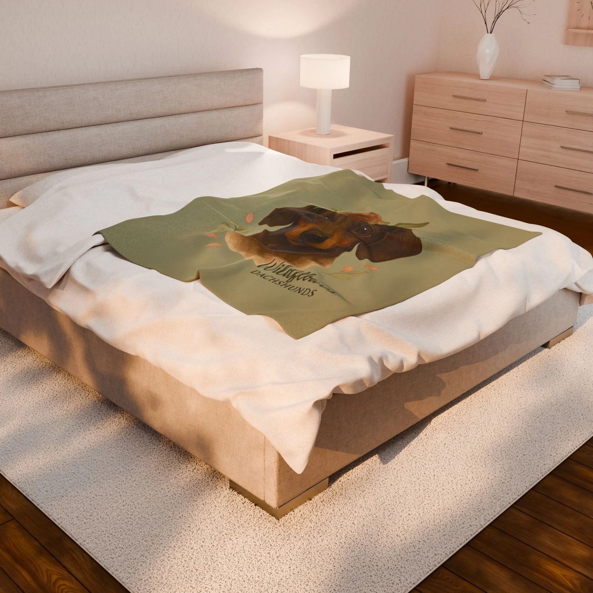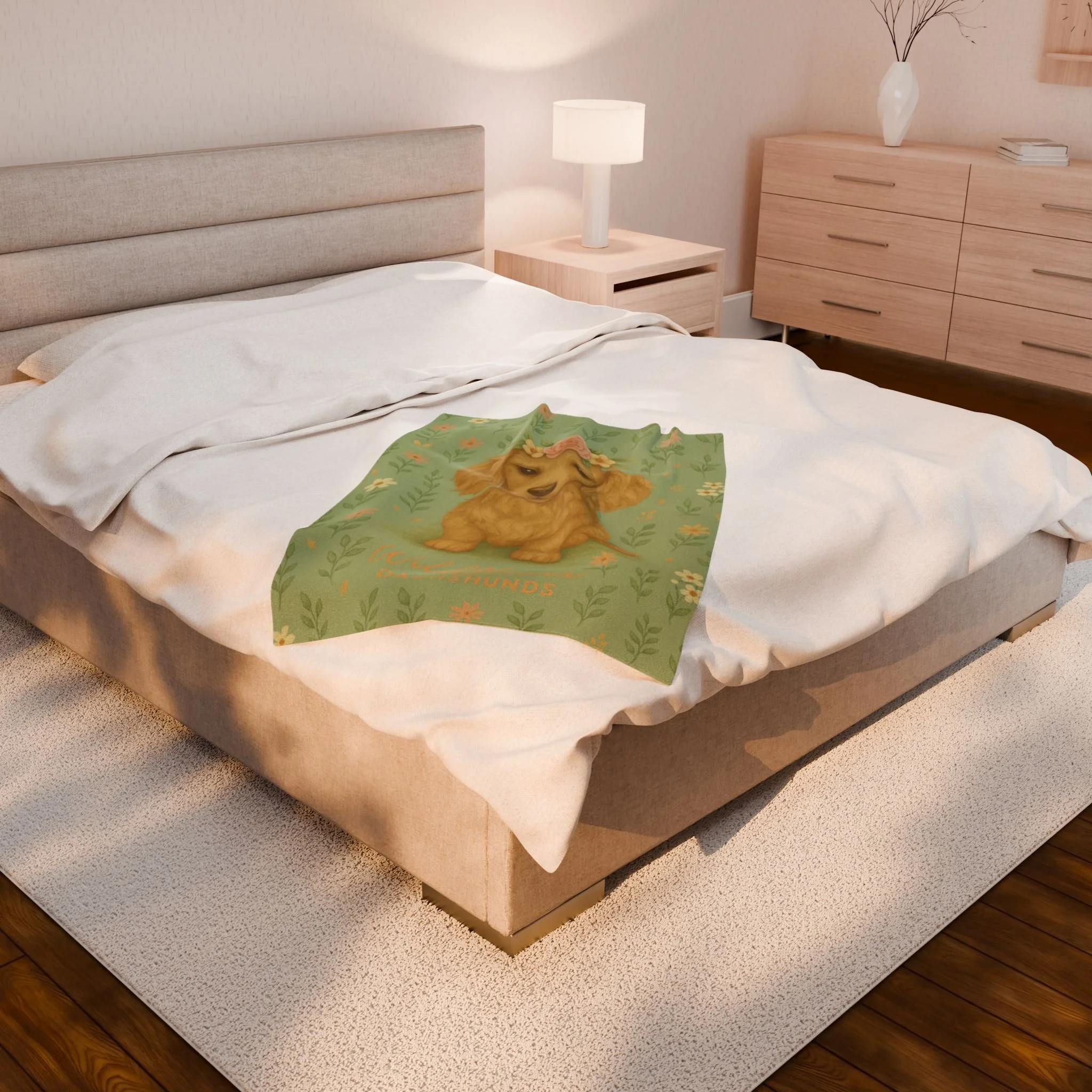 ✨ Sage Blossom Dachshund Velveteen Plush Blanket