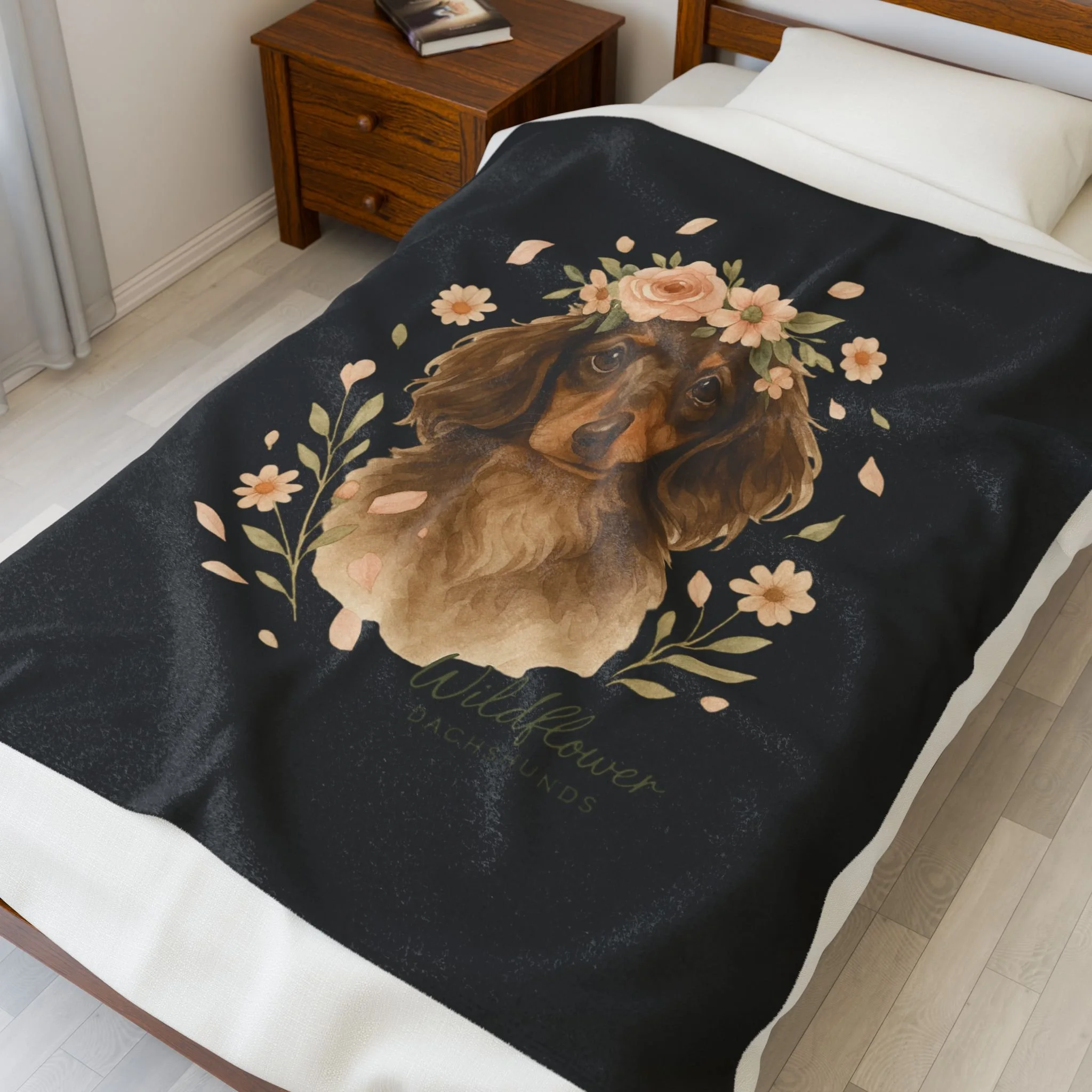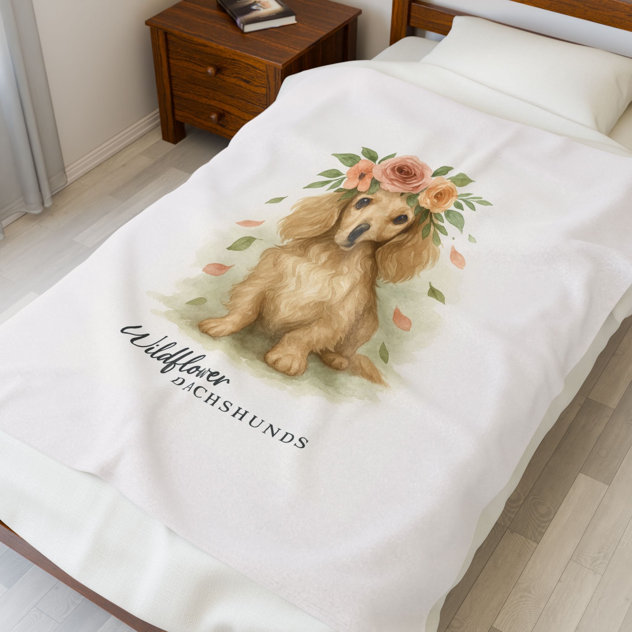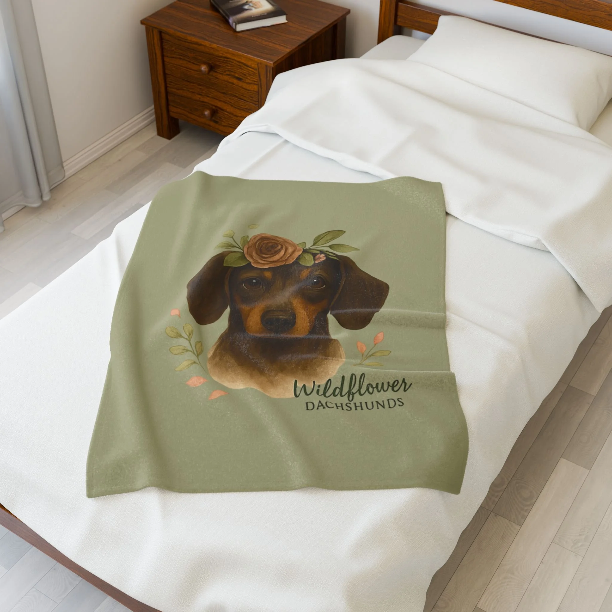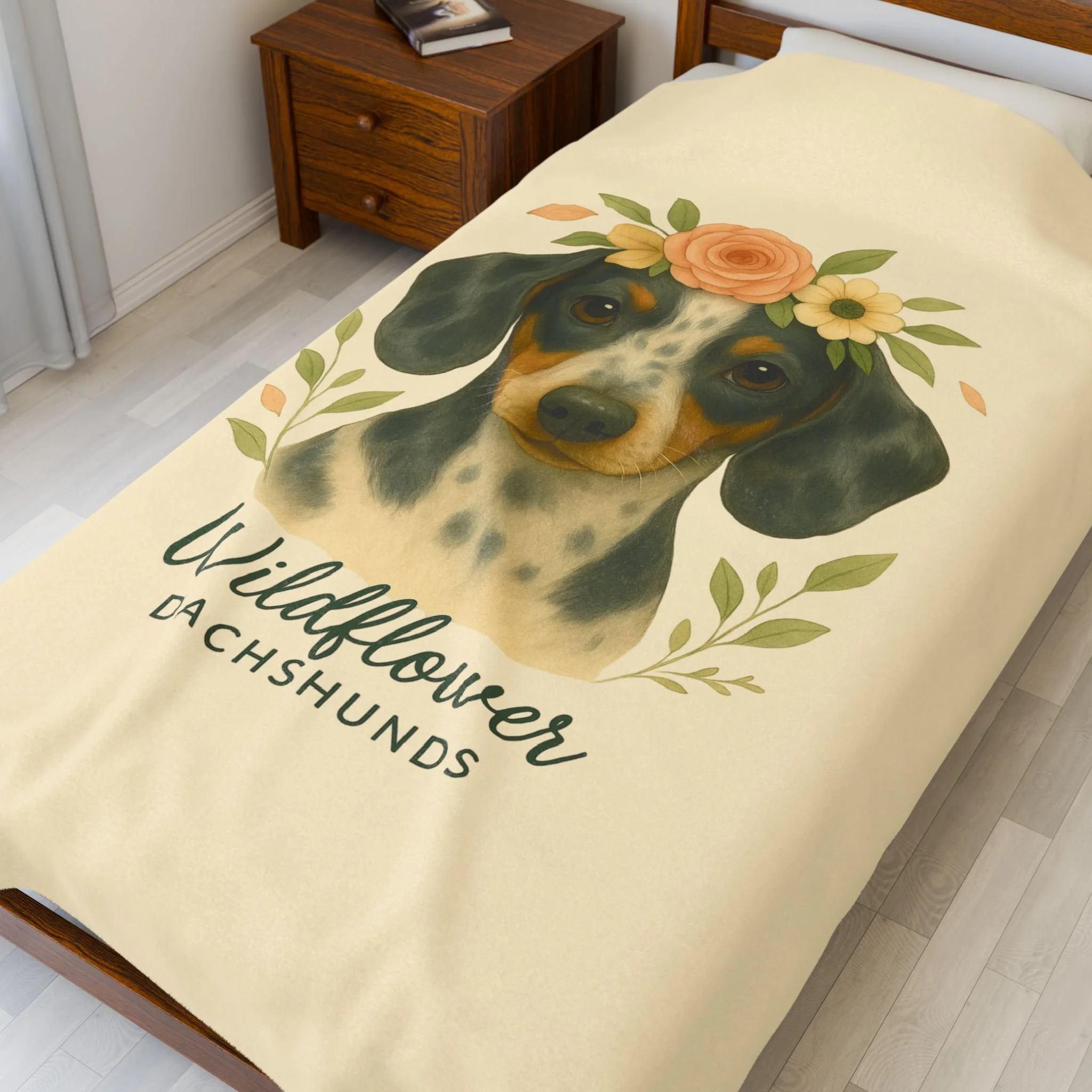 Wildflower Dachshunds Signature Logo Velveteen Plush Blanket