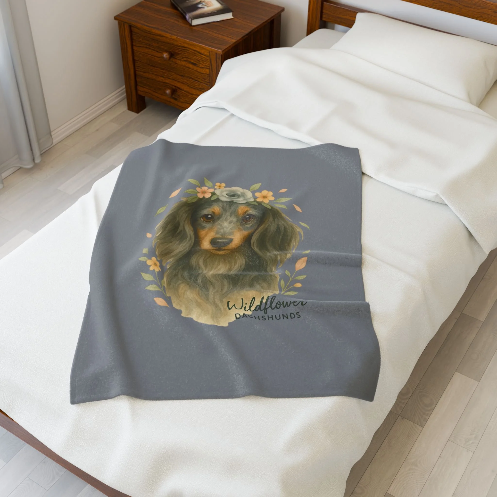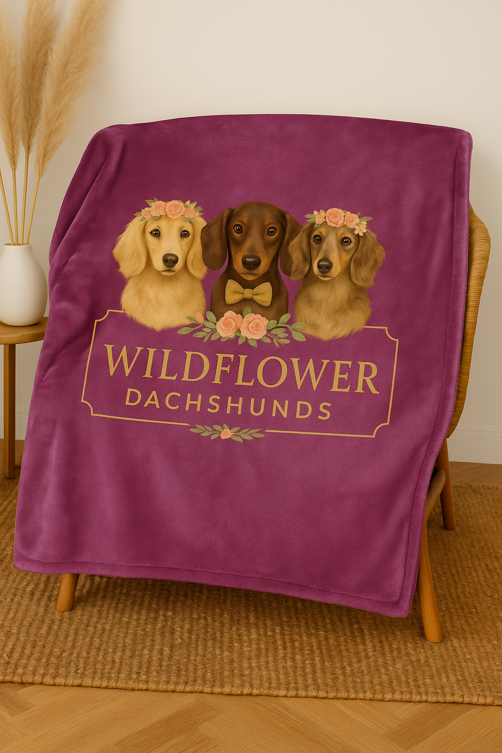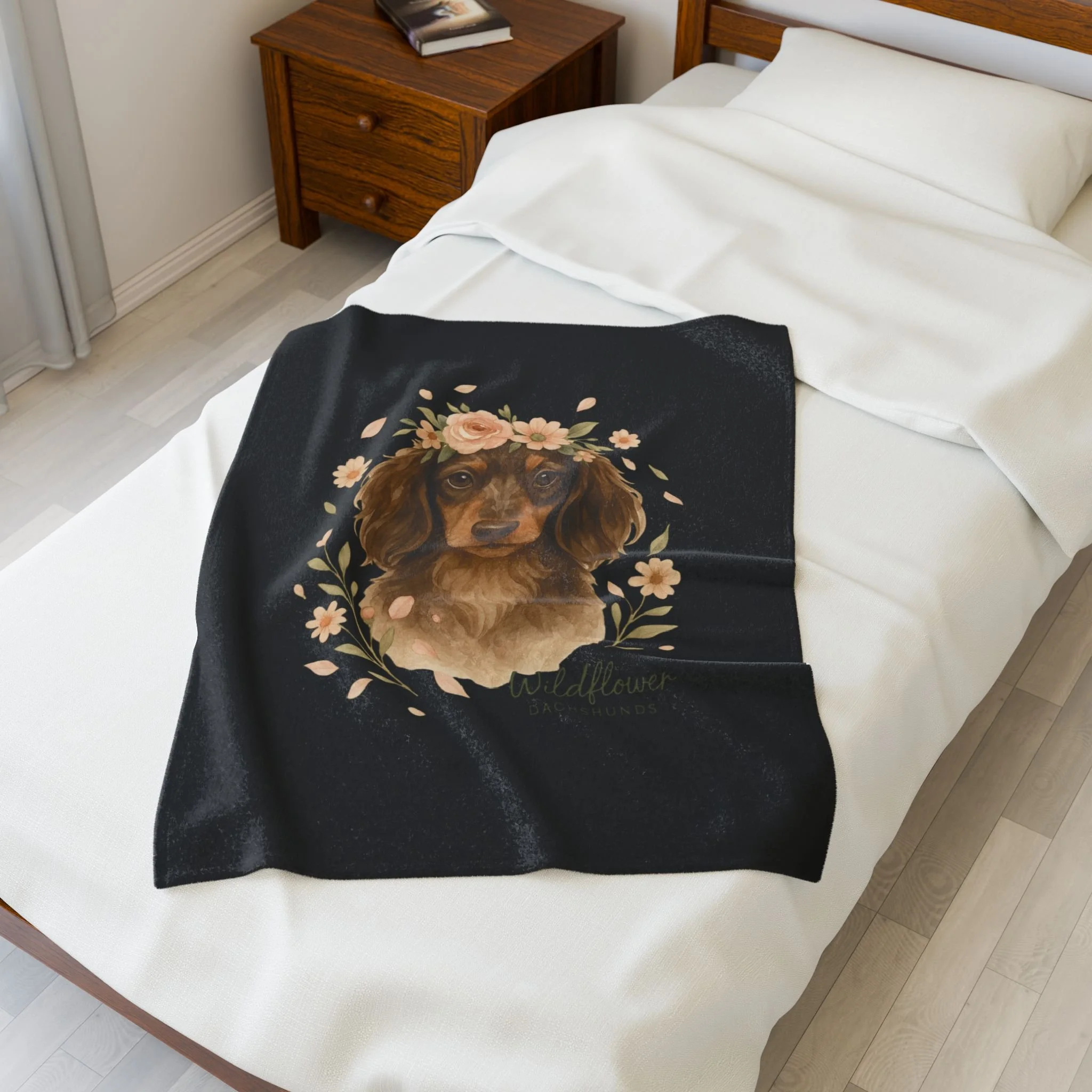 Wildflower Dachshunds Signature Logo Velveteen Plush Blanket