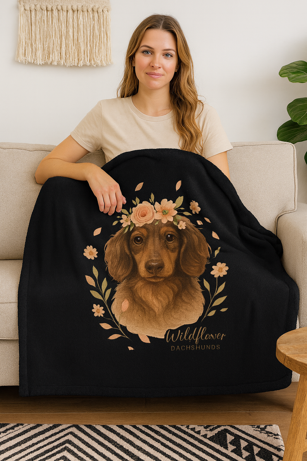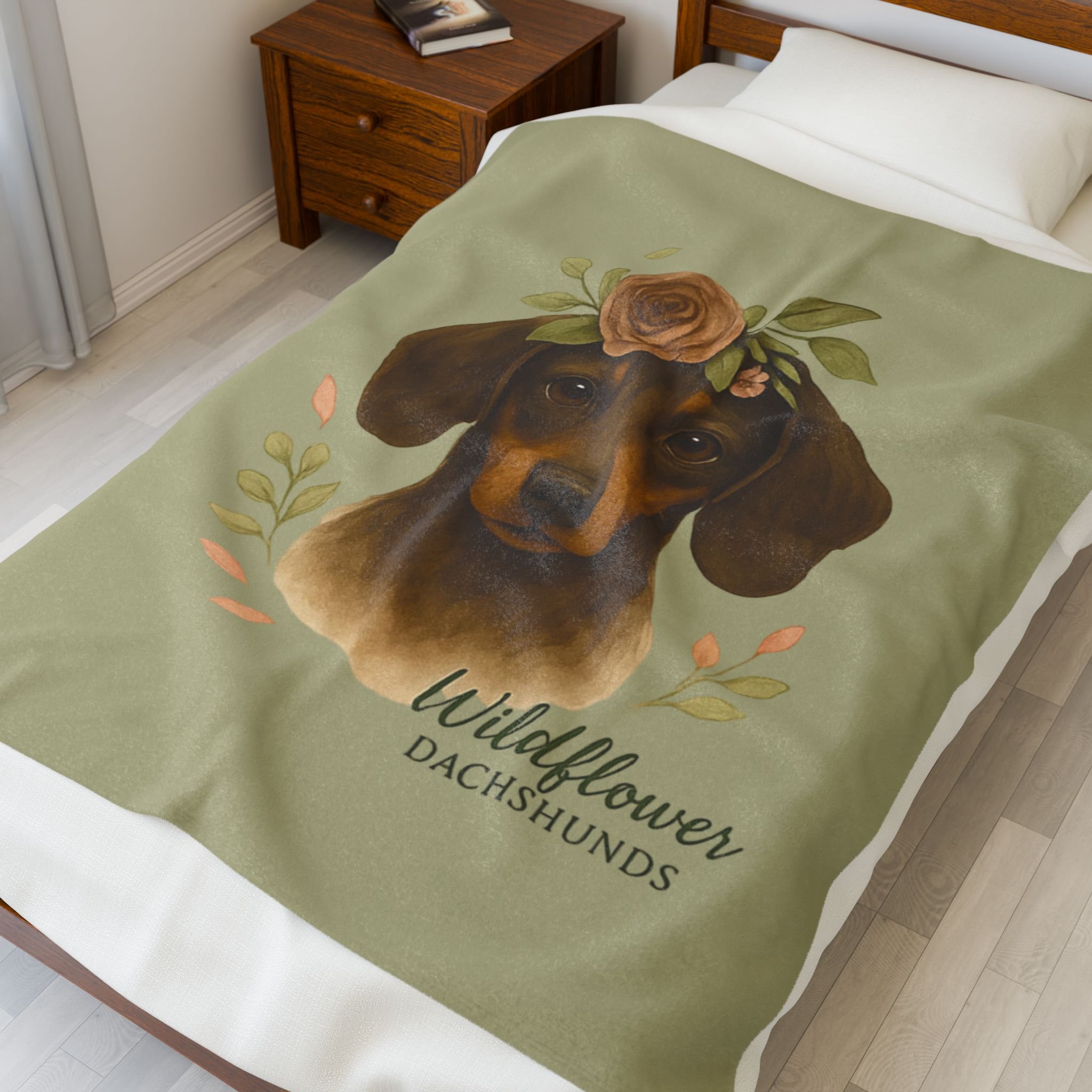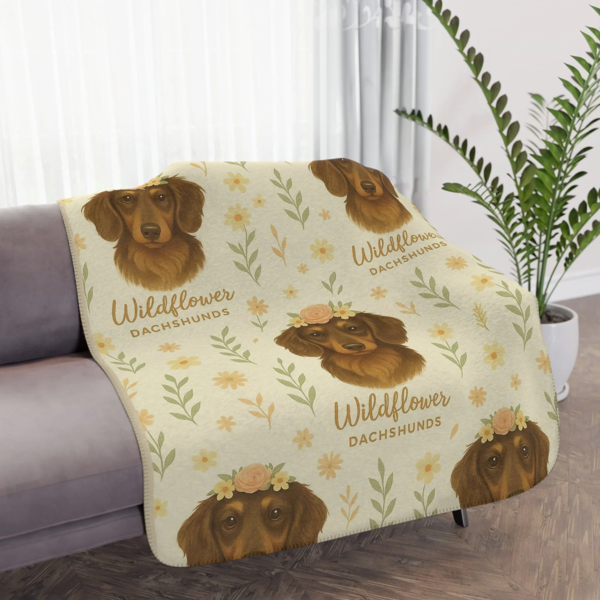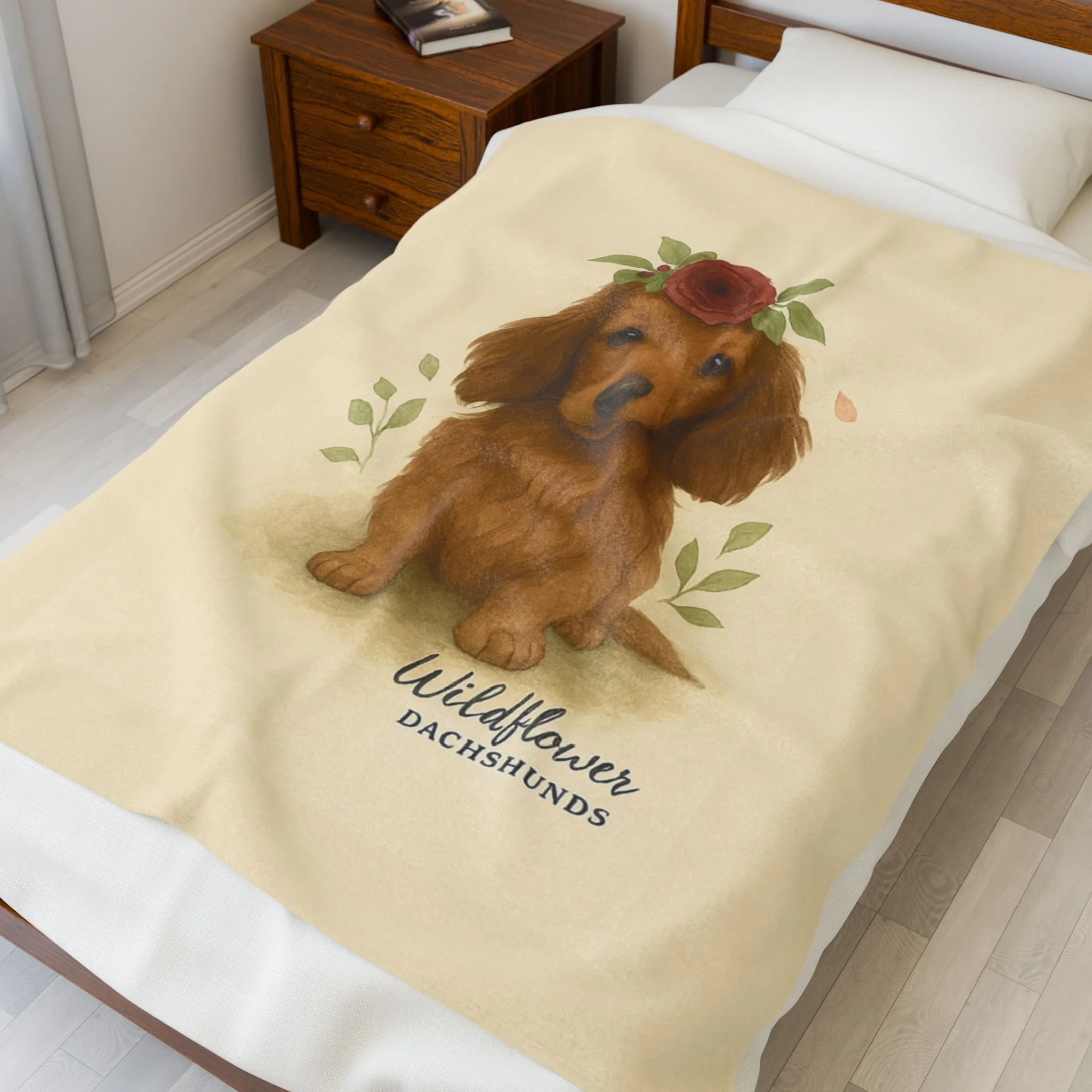 Wildflower Dachshunds Signature Logo Velveteen Plush Blanket
