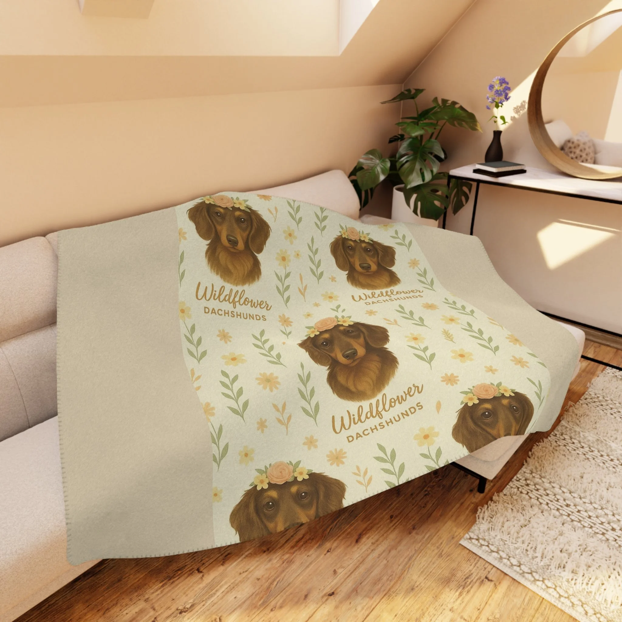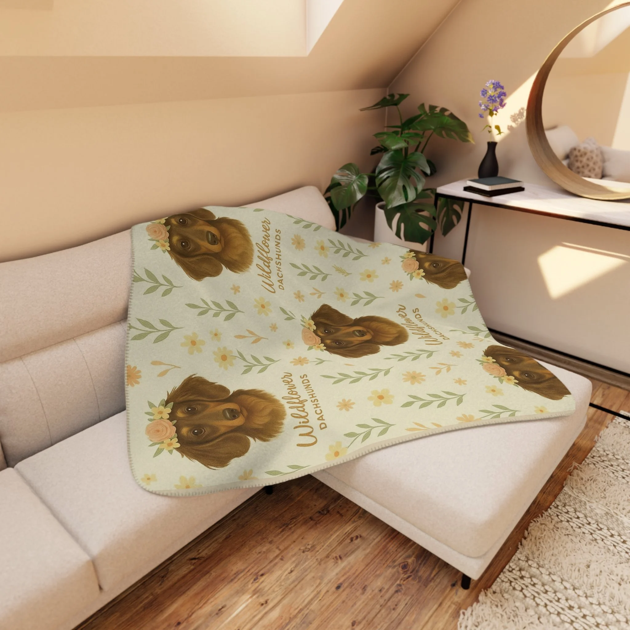 Copy of Cozy Tan Sherpa Blanket with Wildflower Dachshund Design - Perfect for Dog Lovers, Home Decor, Gifts, Pet Enthusiasts, Warm Throw